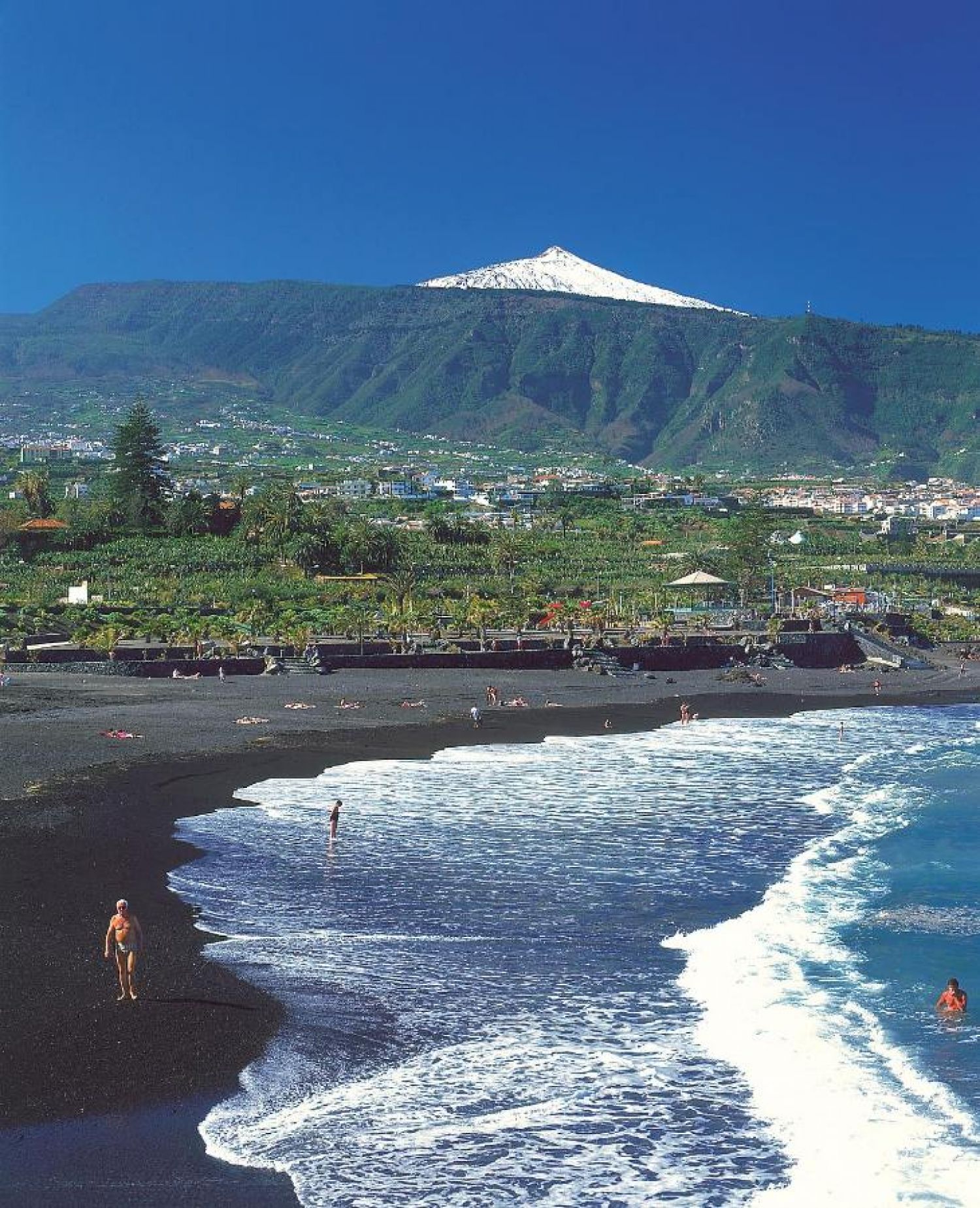 Обществен, пясъчен (вулканичен черен пясък), на 350 м от хотела. Чадъри и шезлонги – срещу заплащане