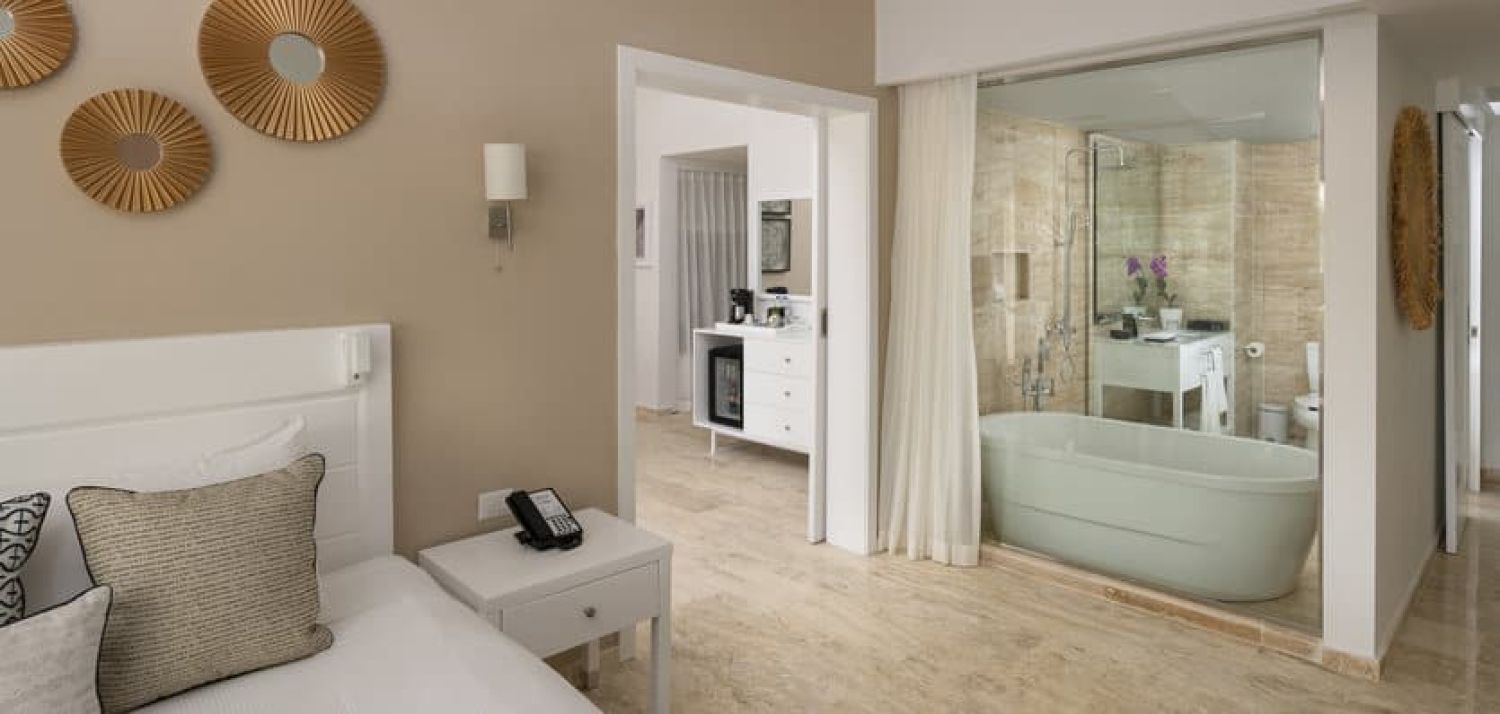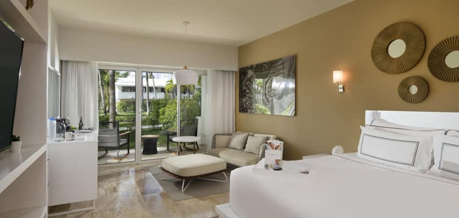 Premium Room Beach Side: 42m2 room located near the beach and with views of the gardens or the main pool. It has a bathroom with a rain shower, and a room with a living area with a sofa and armchairs, and a sleeping area with a king size bed or two twin beds.
