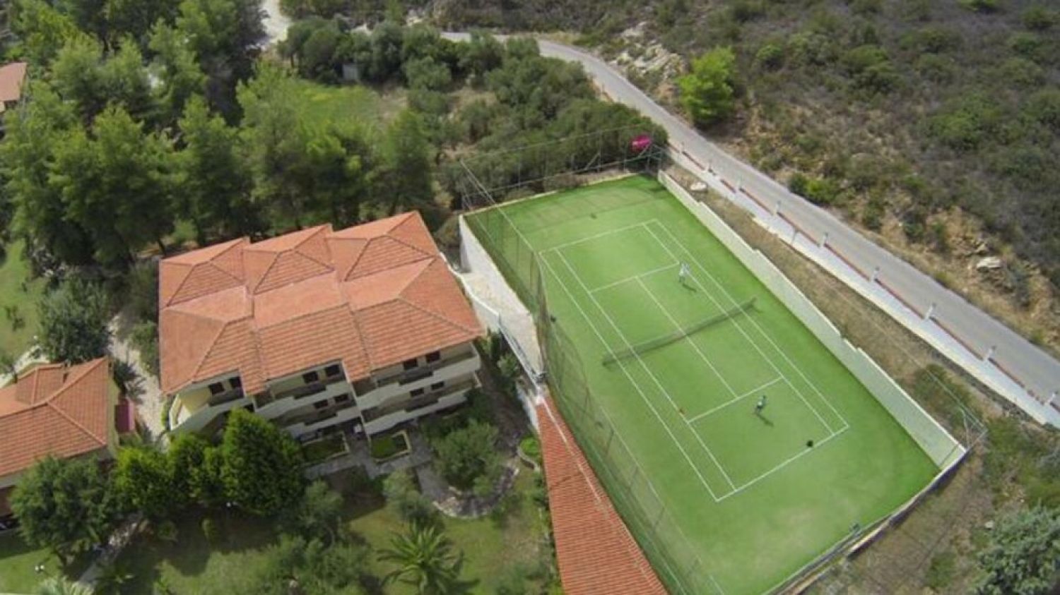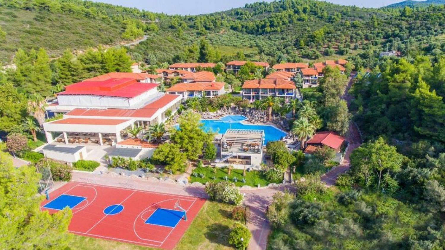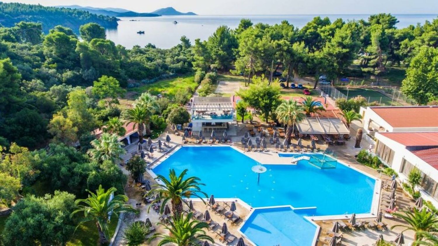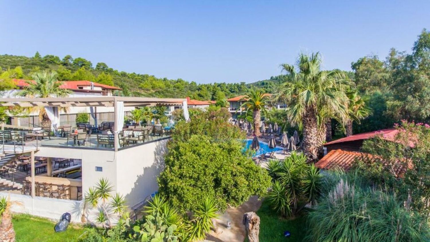 Tucked away basically in a private bay, 10km from Neos Marmaras, Poseidon Resort is an oasis of peace and quiet, ideal for family vacations. Built in a traditional style, respecting the nature and the environment, amidst the blue of sea and the green of the mountain, Poseidon Resort consists of 11 buildings with rooms and suites and the main building with the reception, restaurant and the bar. Operating on all inclusive basis, hotel offers all kinds of entertainment and fun for the kids and adults alike - ranging from daily children animation, mini club, playground, outdoor swimming pool, sun beds and umbrellas, beach volleyball, tennis court, mini football, table tennis, to organized beach and pool activities, free Wi-Fi and organized Greek nights and live music... Impressive coastline, small cove, gentle hills, the mountain on the one hand and the vastness of the sea on the other, in a unique location surrounded by pine trees, this hotel is on a sprawling verdant garden of 24 acres. Olives, pine trees, palm trees, fruit trees and many endemic flowers hide away a haven of relaxation and family holidays.