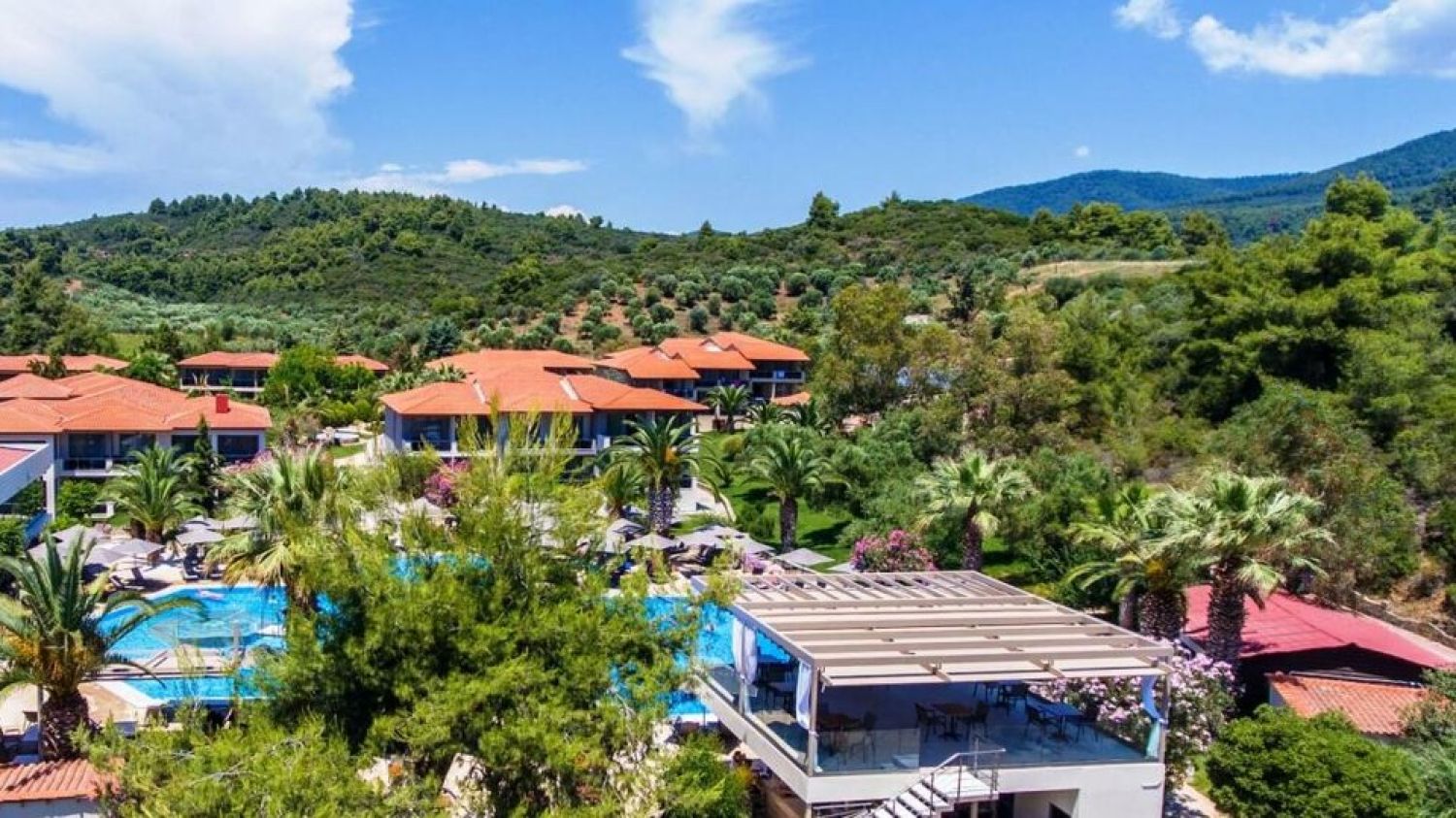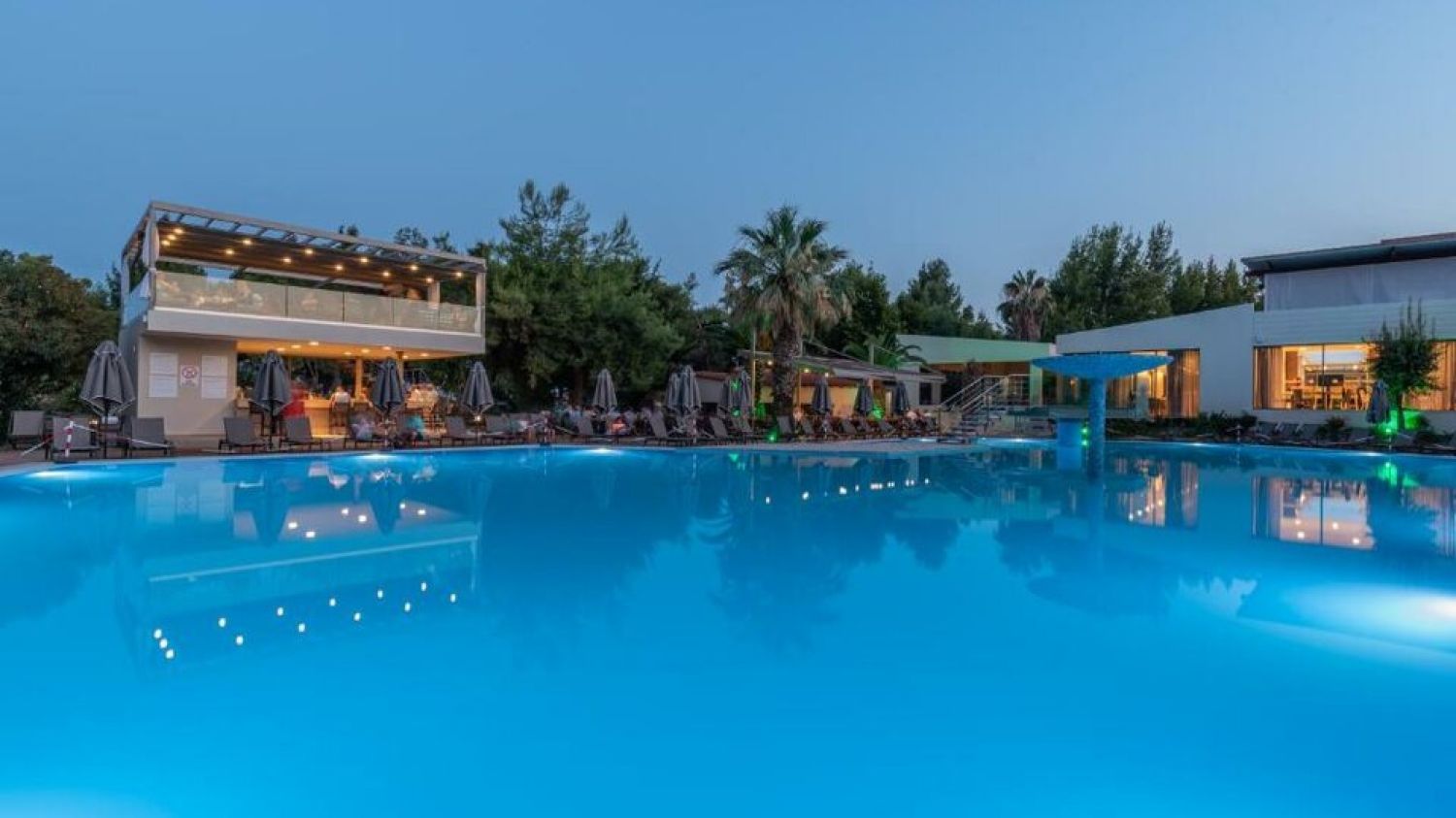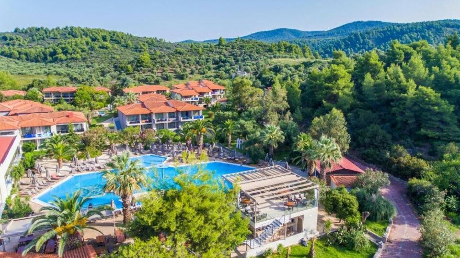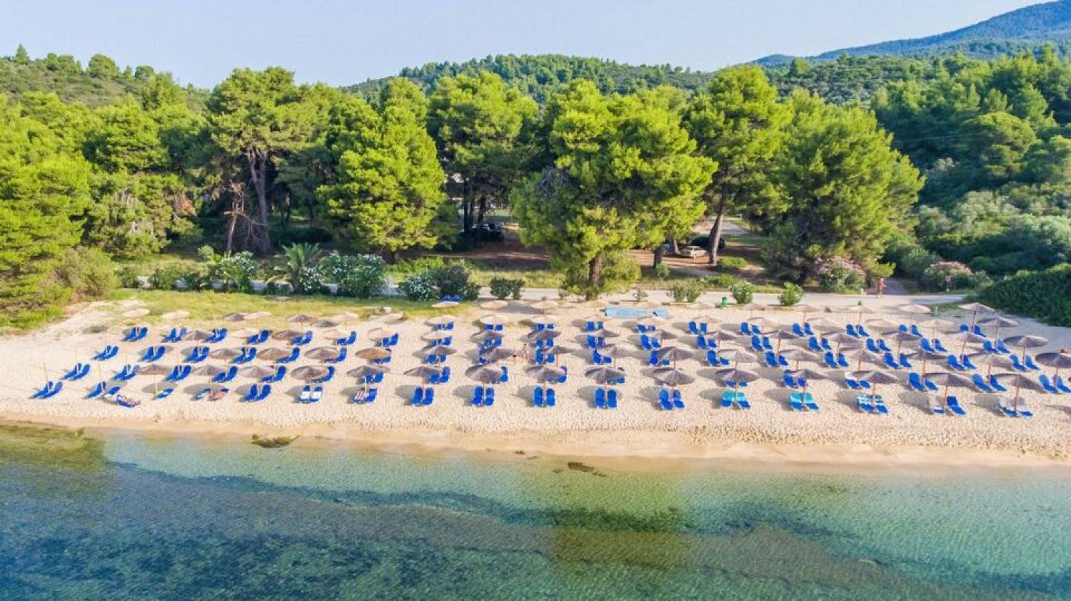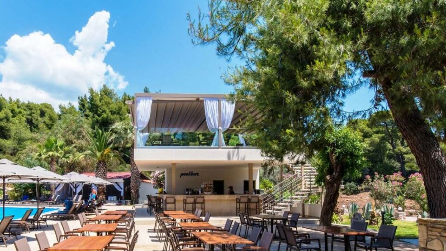 Tucked away basically in a private bay, 10km from Neos Marmaras, Poseidon Resort is an oasis of peace and quiet, ideal for family vacations. Built in a traditional style, respecting the nature and the environment, amidst the blue of sea and the green of the mountain, Poseidon Resort consists of 11 buildings with rooms and suites and the main building with the reception, restaurant and the bar. Operating on all inclusive basis, hotel offers all kinds of entertainment and fun for the kids and adults alike - ranging from daily children animation, mini club, playground, outdoor swimming pool, sun beds and umbrellas, beach volleyball, tennis court, mini football, table tennis, to organized beach and pool activities, free Wi-Fi and organized Greek nights and live music... Impressive coastline, small cove, gentle hills, the mountain on the one hand and the vastness of the sea on the other, in a unique location surrounded by pine trees, this hotel is on a sprawling verdant garden of 24 acres. Olives, pine trees, palm trees, fruit trees and many endemic flowers hide away a haven of relaxation and family holidays.