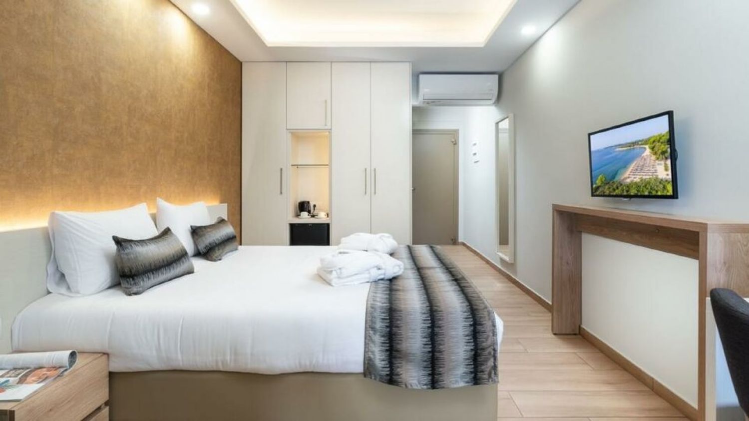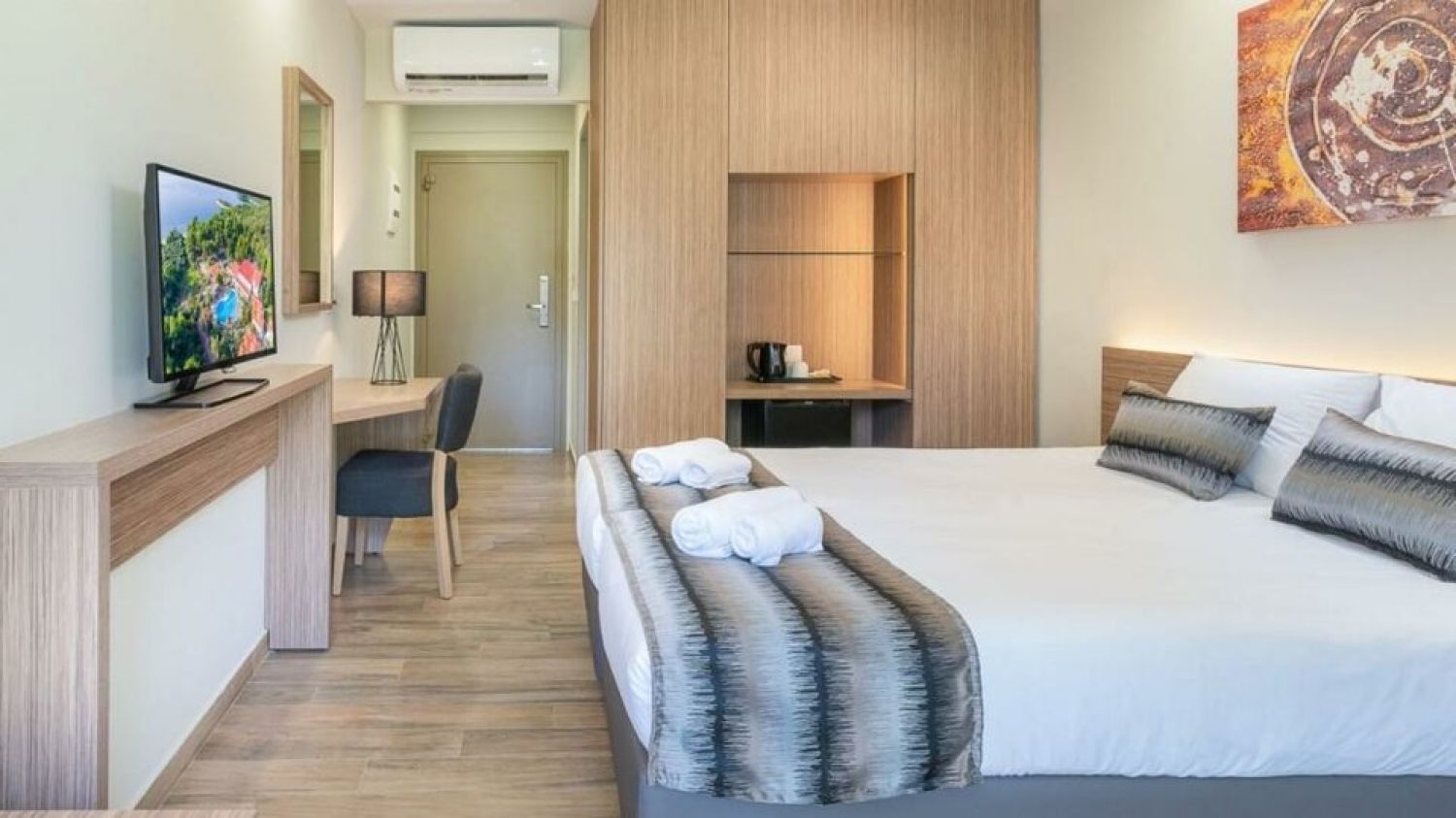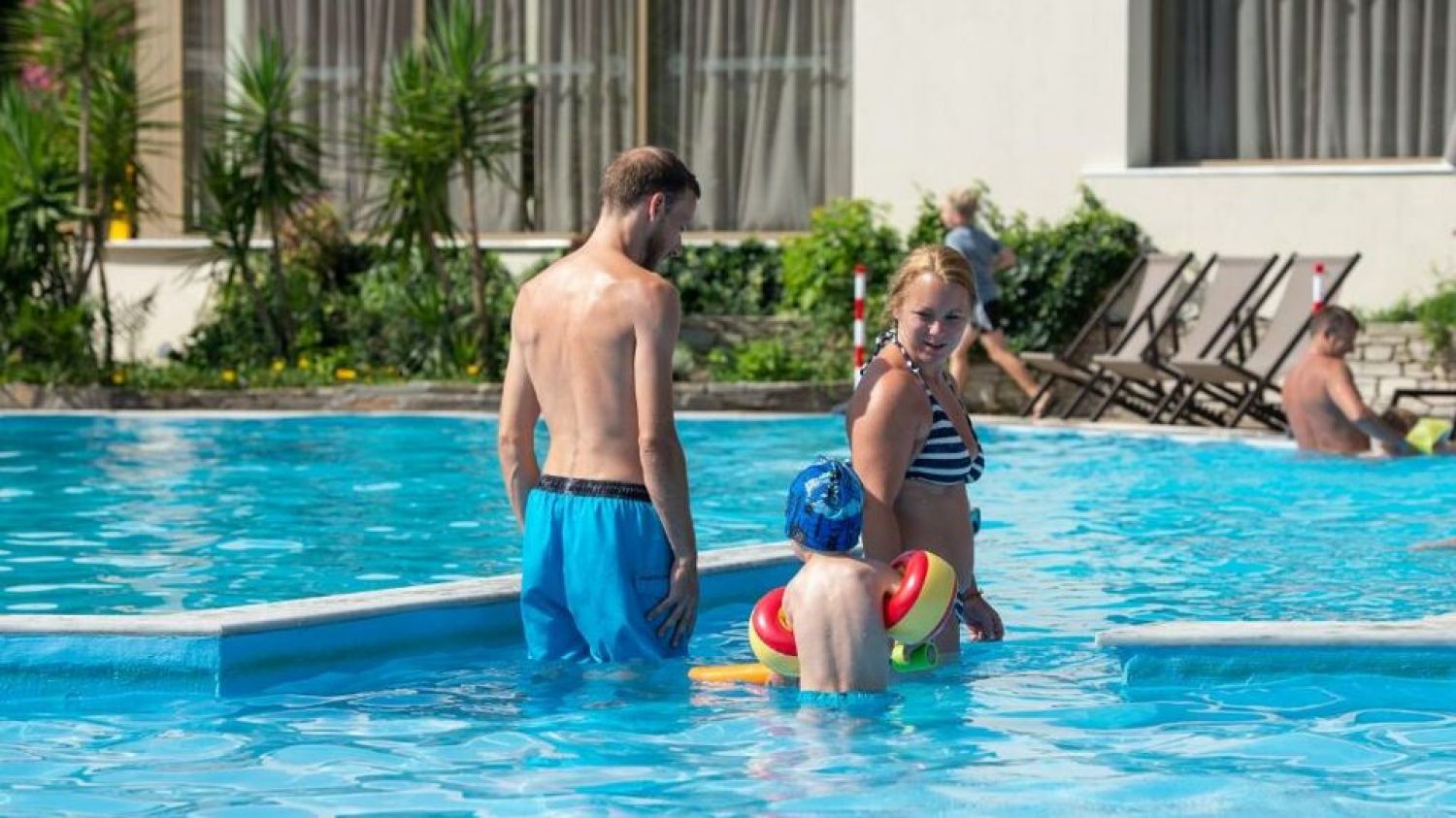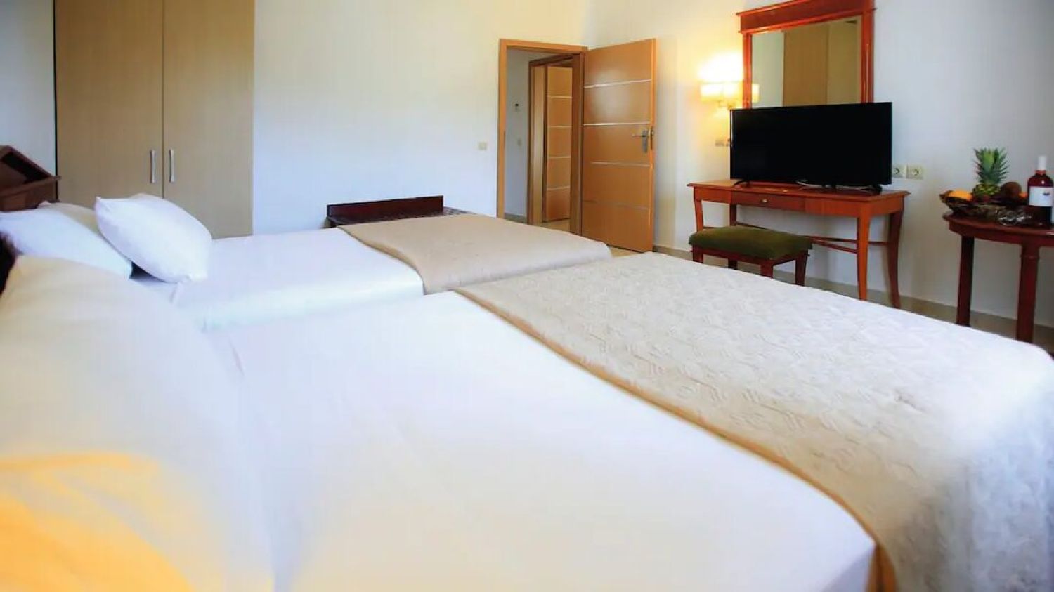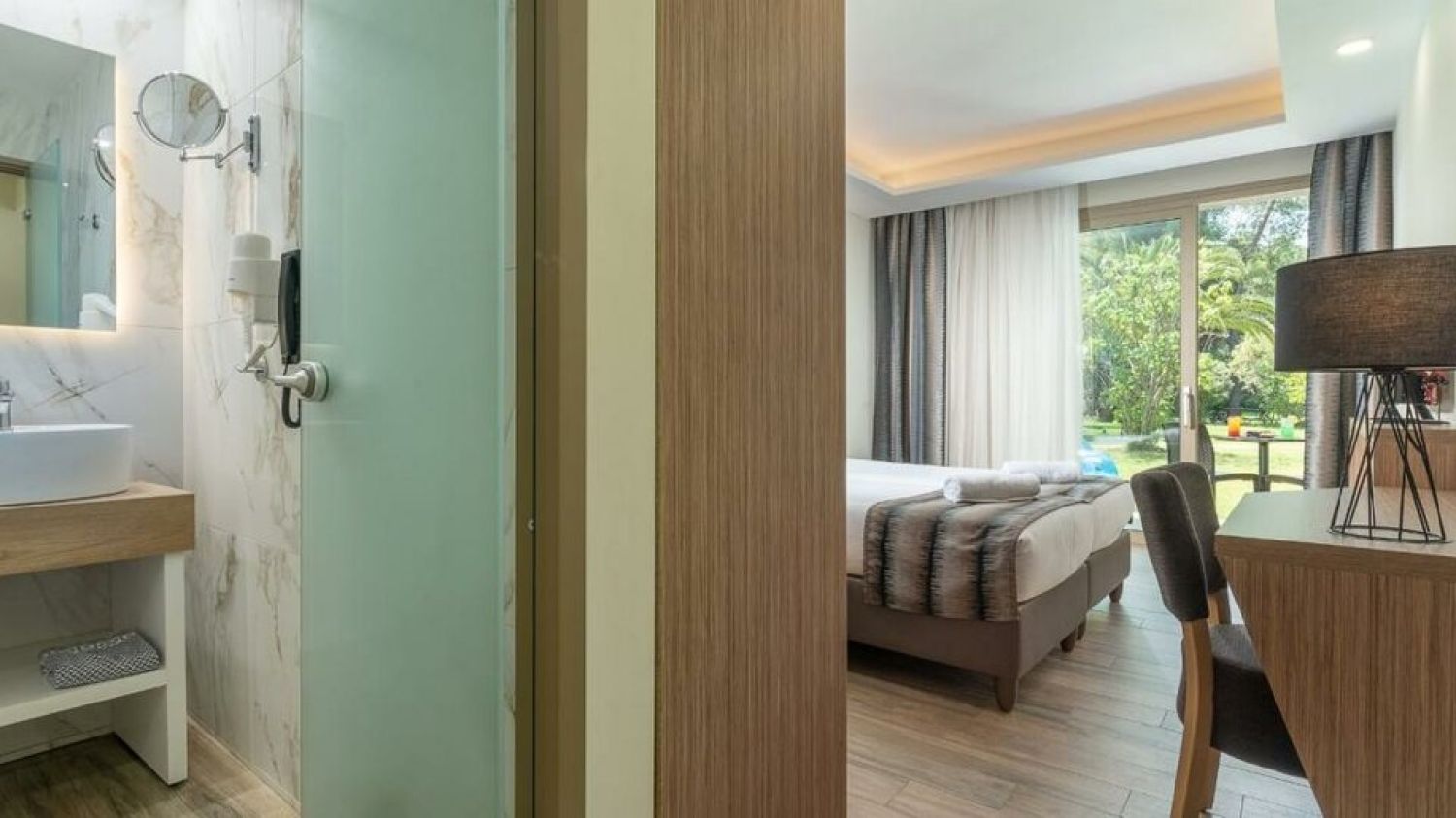 Tucked away basically in a private bay, 10km from Neos Marmaras, Poseidon Resort is an oasis of peace and quiet, ideal for family vacations. Built in a traditional style, respecting the nature and the environment, amidst the blue of sea and the green of the mountain, Poseidon Resort consists of 11 buildings with rooms and suites and the main building with the reception, restaurant and the bar. Operating on all inclusive basis, hotel offers all kinds of entertainment and fun for the kids and adults alike - ranging from daily children animation, mini club, playground, outdoor swimming pool, sun beds and umbrellas, beach volleyball, tennis court, mini football, table tennis, to organized beach and pool activities, free Wi-Fi and organized Greek nights and live music... Impressive coastline, small cove, gentle hills, the mountain on the one hand and the vastness of the sea on the other, in a unique location surrounded by pine trees, this hotel is on a sprawling verdant garden of 24 acres. Olives, pine trees, palm trees, fruit trees and many endemic flowers hide away a haven of relaxation and family holidays.