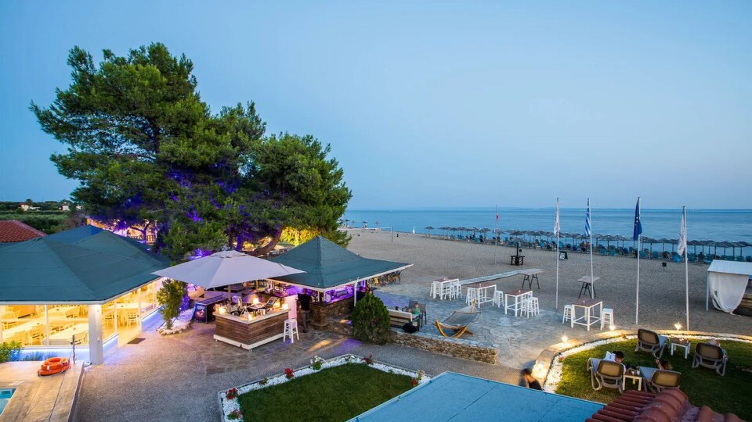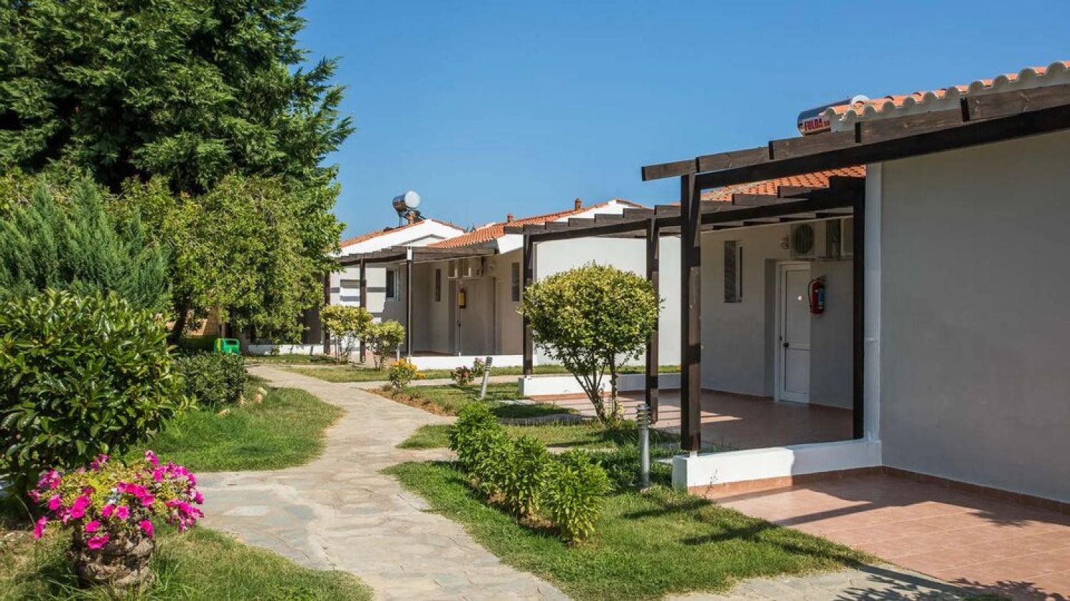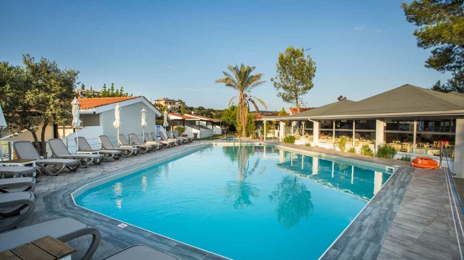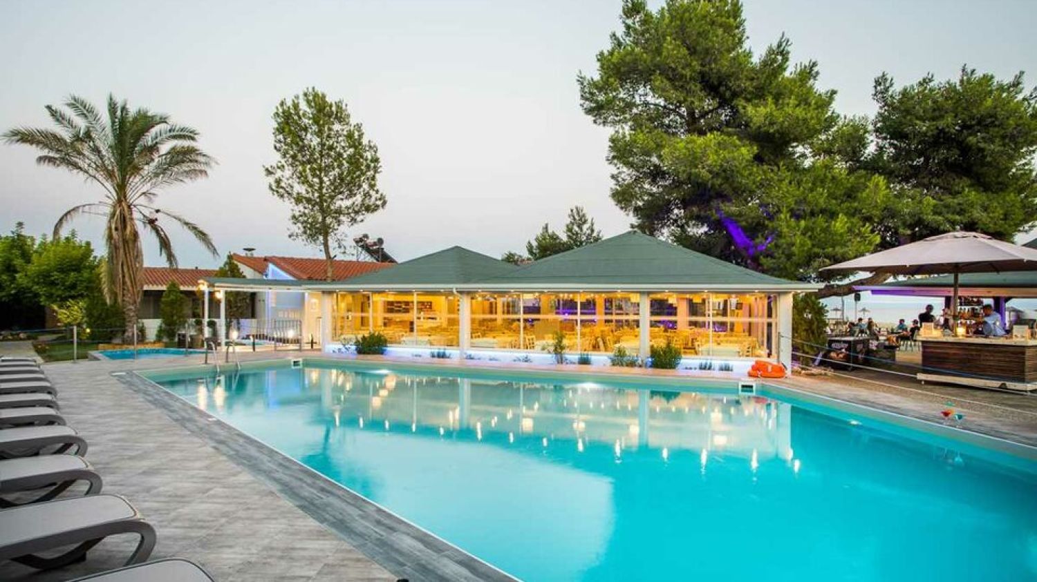 The Coral Blue Beach hotel is nestled in eight acres of lawns which create a cool oasis, and complement the resort’s beautiful beach. Gerakini is 3km away and the Thessaloniki airport is 45km away. Hotel's seaside location allows you to enjoy the wonderful blue water, the golden sandy beach and also the nearby tourist beach. Hotel consists of several low-rise bungalows with accommodation units, and the main building tucked away in the lush garden.