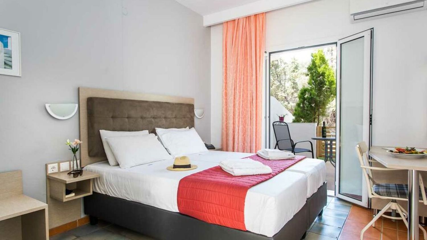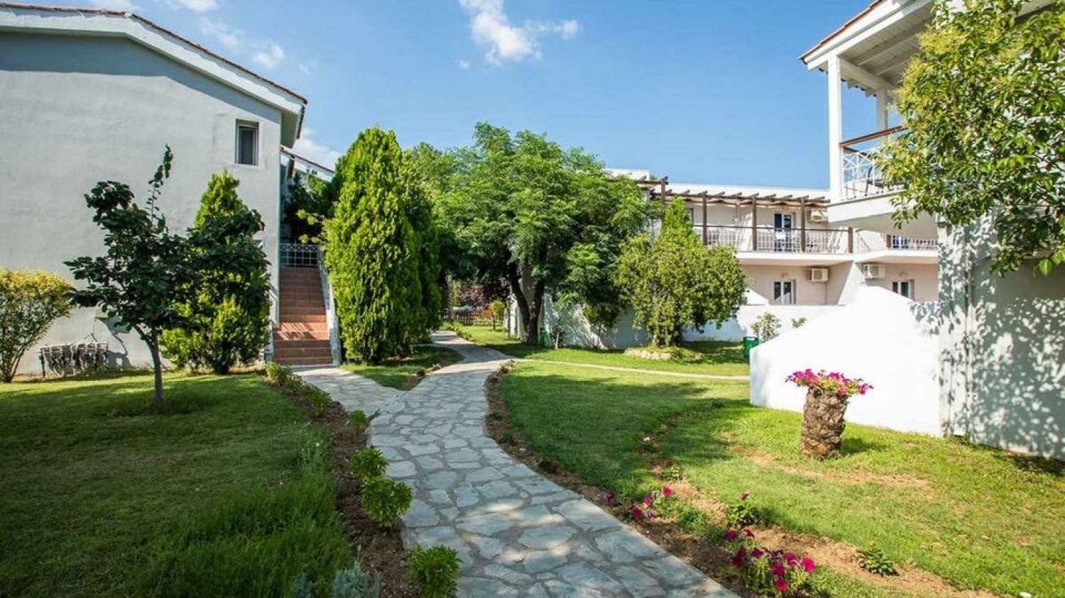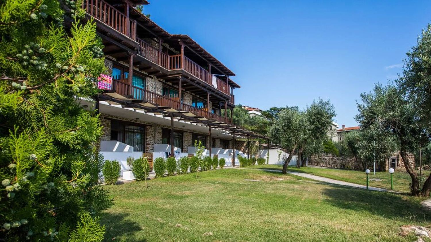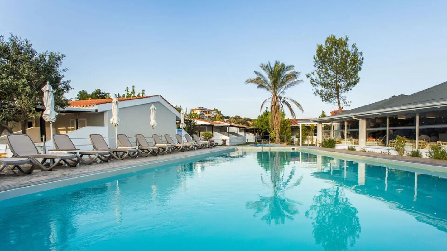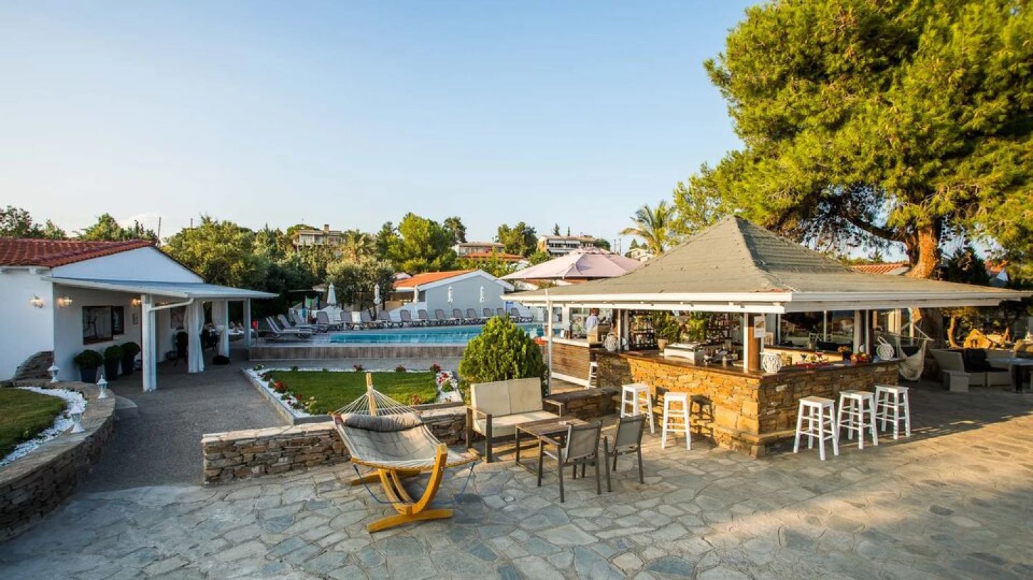 The Coral Blue Beach hotel is nestled in eight acres of lawns which create a cool oasis, and complement the resort’s beautiful beach. Gerakini is 3km away and the Thessaloniki airport is 45km away. Hotel's seaside location allows you to enjoy the wonderful blue water, the golden sandy beach and also the nearby tourist beach. Hotel consists of several low-rise bungalows with accommodation units, and the main building tucked away in the lush garden.