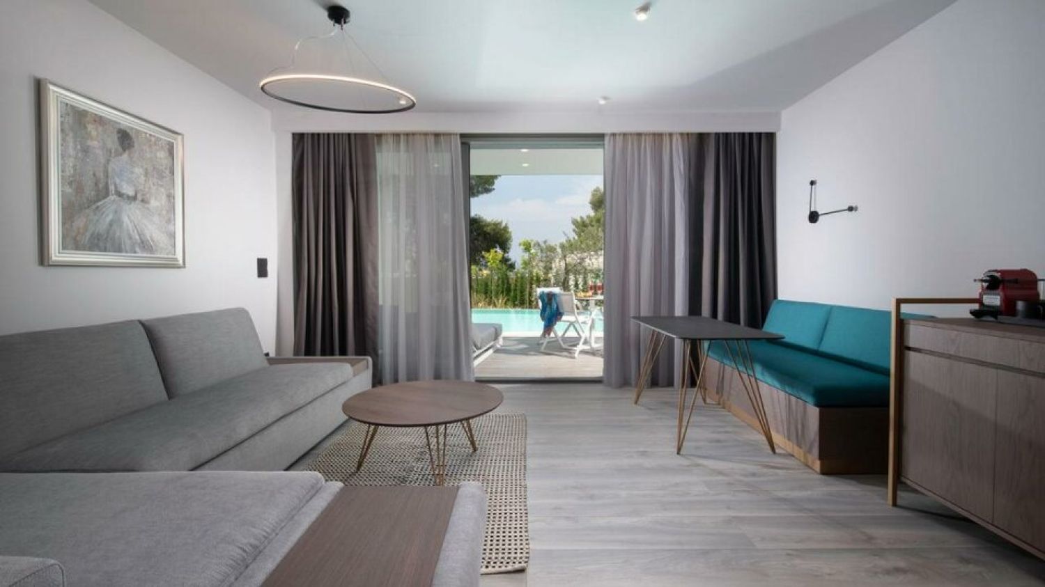 Stretching along the amazing Lagomandra cove, with golden sands and crystal clear sea, Lagomandra Beach&Suites is a laid-back, relaxed 4-star hotel, part of a larger complex. It's an ideal holiday hotspot, with fresh and modern accommodation set in a beautifully, tranquil setting. With facilities to suit people of all ages, the Lagomandra Beach&Suites is wonderful choice for everyone. Only a short walk away you'll find the sister hotel Lagomandra Hotel & Spa where guests can also enjoy the facilities here too. The beach of Lagomandra, as well as the Lagomandra Beach Hotel and Suites are just seven (7) km away from cosmopolitan Neos Marmaras and thirteen (13) km from Nikiti. The beach is very easily accessible both from the main Sithonia road as well as the hotel.