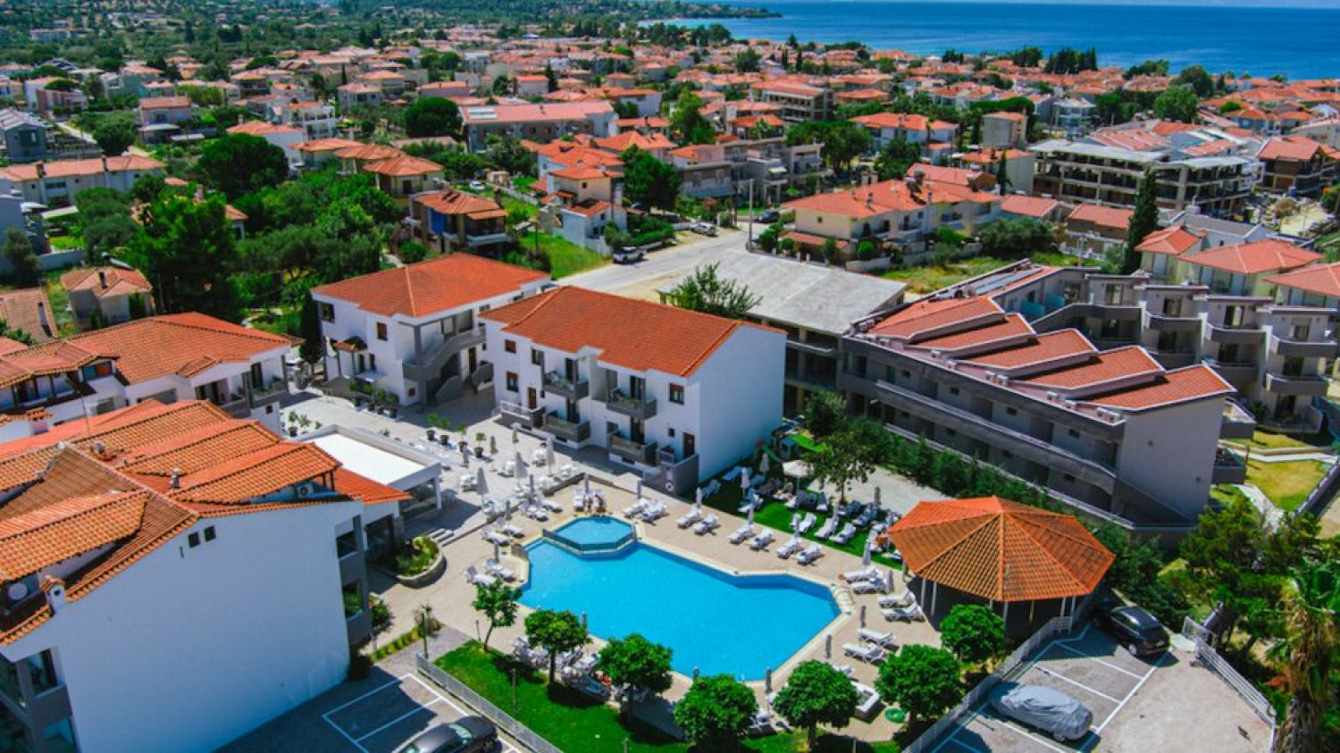 With the guaranteed quality of the Acrotel Group, Lily Ann Village enriches your accommodation options and offers you a unique vacation in the enchanting Sithonia, Halkidiki, in the heart of the cosmopolitan Nikiti, just 400 meters from the award-winning sandy beach. A small hotel with 4 buildings and 42 renovated rooms (double, superior and family) all surrounded by lush gardens which harmoniously combine the friendly environment and comfort. Acrotel Lily Ann Village features a freshwater pool with children’s area, Pool / Snack Bar and parasols with sun loungers, an elegant reception area and an air-conditioned restaurant serving breakfast and dinner. Nearby are entertainment venues such as restaurants, bars, and shops. Especially during the summer months, many cultural events are organized in Nikiti. Thessaloniki airport is 85km away.