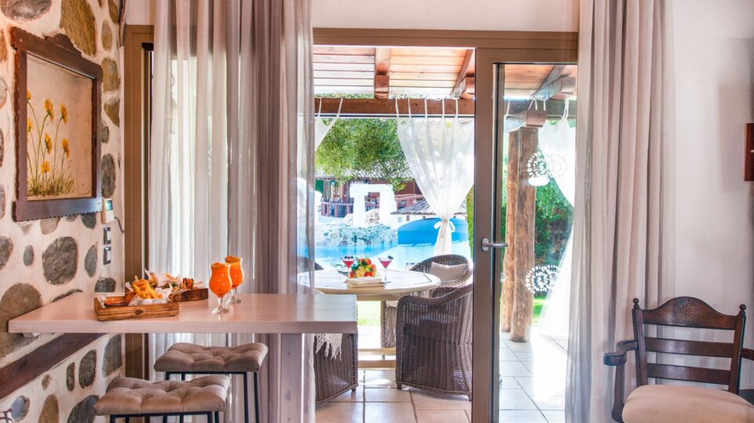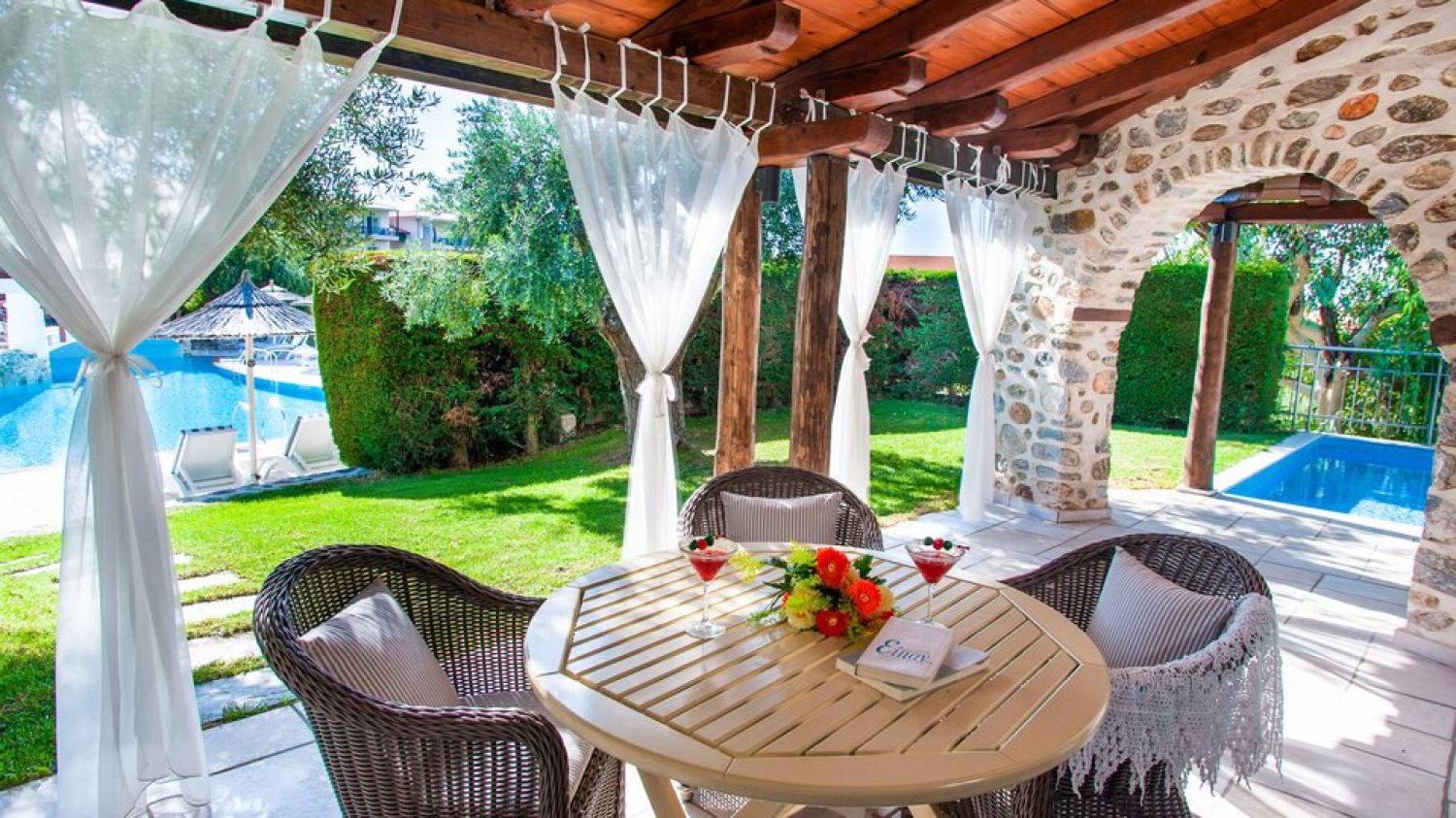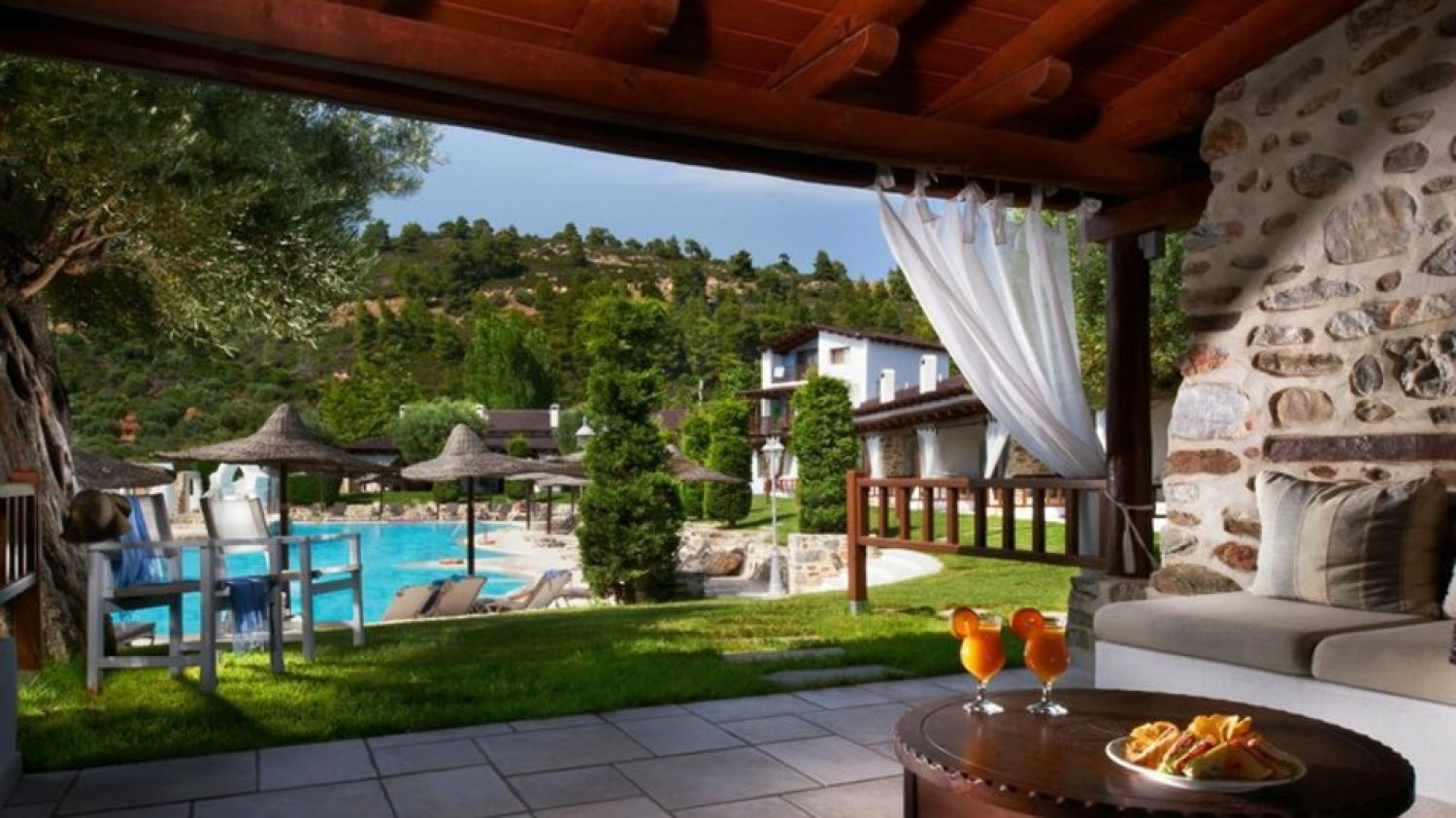 Discover a unique blend of privacy, tradition, and contemporary comforts at Acrotel Athena Residence, nestled within the mesmerizing landscape of Sithonia. Renovated in 2019, Athena Residence houses 22 brand new maisonettes in two 2-storey buildings, surrounding a large freshwater pool and Jacuzzi, an indoor heated pool as well as the hotel’s beautiful crystal-clear beach and excellent beach bar provide for strong doses of coolness and freshness as an enjoyable feature. Acrotel Athena Residence Hotel is located next to the hotel Acrotel Athena Pallas on the coast of Elias, in the dreamy second prong of Halkidiki. It is set in a peaceful environment in harmony with the rich nature and the blue sea, ready to offer you the authentic Greek hospitality. Nearby are Nikiti (9 km) and Neos Marmaras (11 km), both of which are served by the hotel bus. Thessaloniki airport lies at 97km distance.