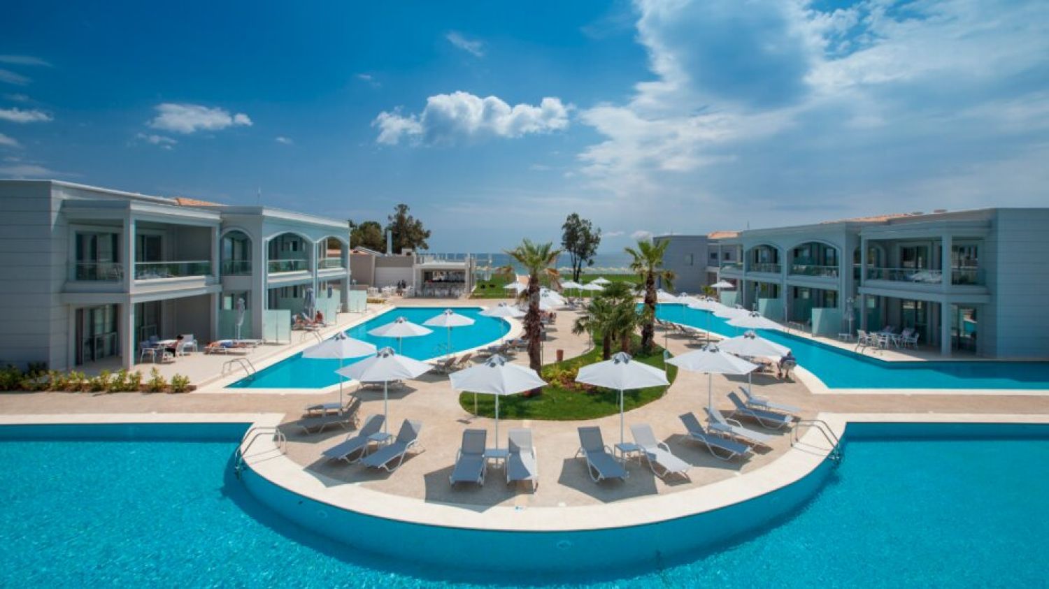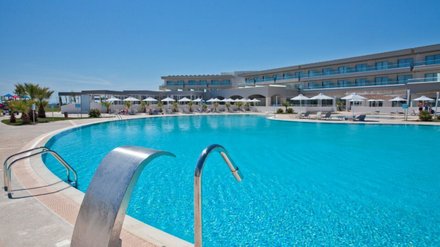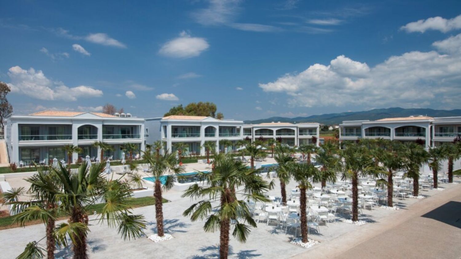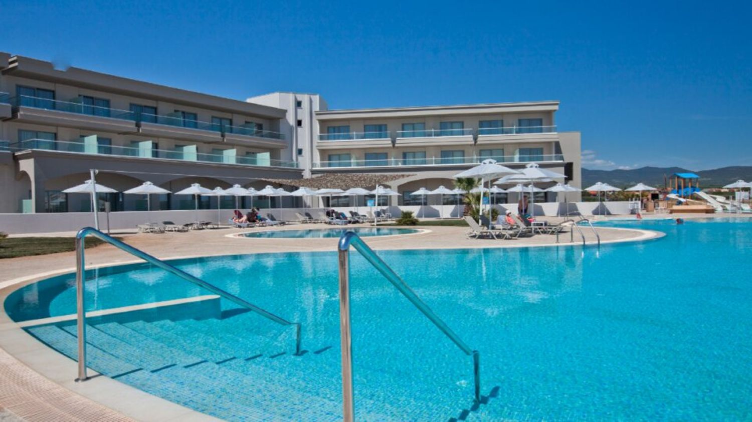 Golden sandy beach and the crystal clear water reflecting the deep green of the pine forest, Blue Lagoon Princess is a 5-star propery located on the beach of Kalives, Halkidiki only a short drive from Makedonia airport, on the Toronian Golf between the first and the second leg of the Halkidiki Peninsula. This newly built hotel offers everything the sophisticated tourist will expect; luxury and comfort, several pools and Spa, children’s facilities and sports, in a few words the ideal settings for social- and family events. Blue Lagoon Princess follows high quality standards while also promoting environmental friendly procedures. The hotel’s set in a peaceful spot, which means it’s got a lot of room to spread out. There’s a long sweep of sand right in front of it, which offers watersports and beach games, too. Thessaloniki airport is 61km away, while the village resort of Gerakini lies at 7km distance.
