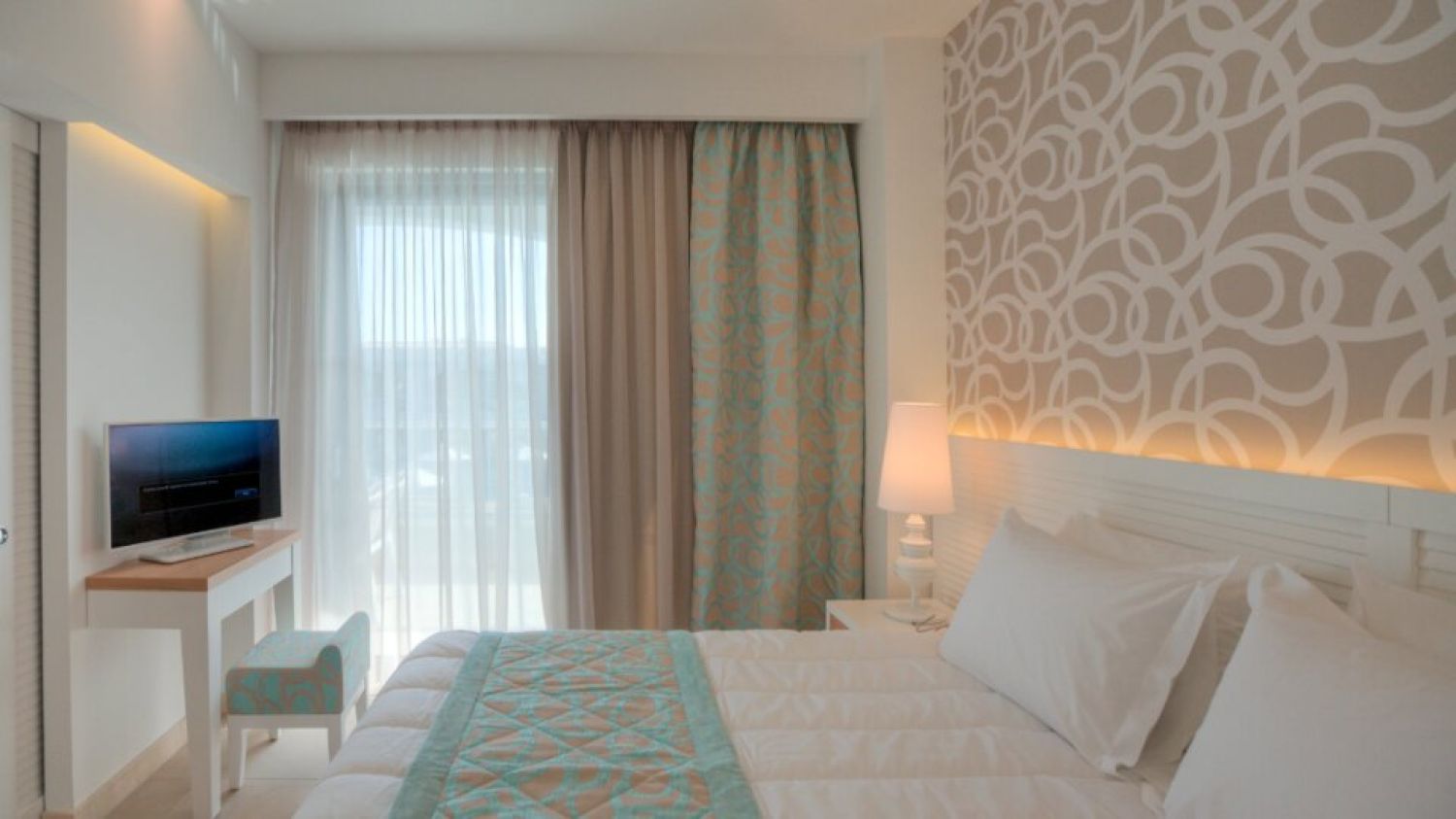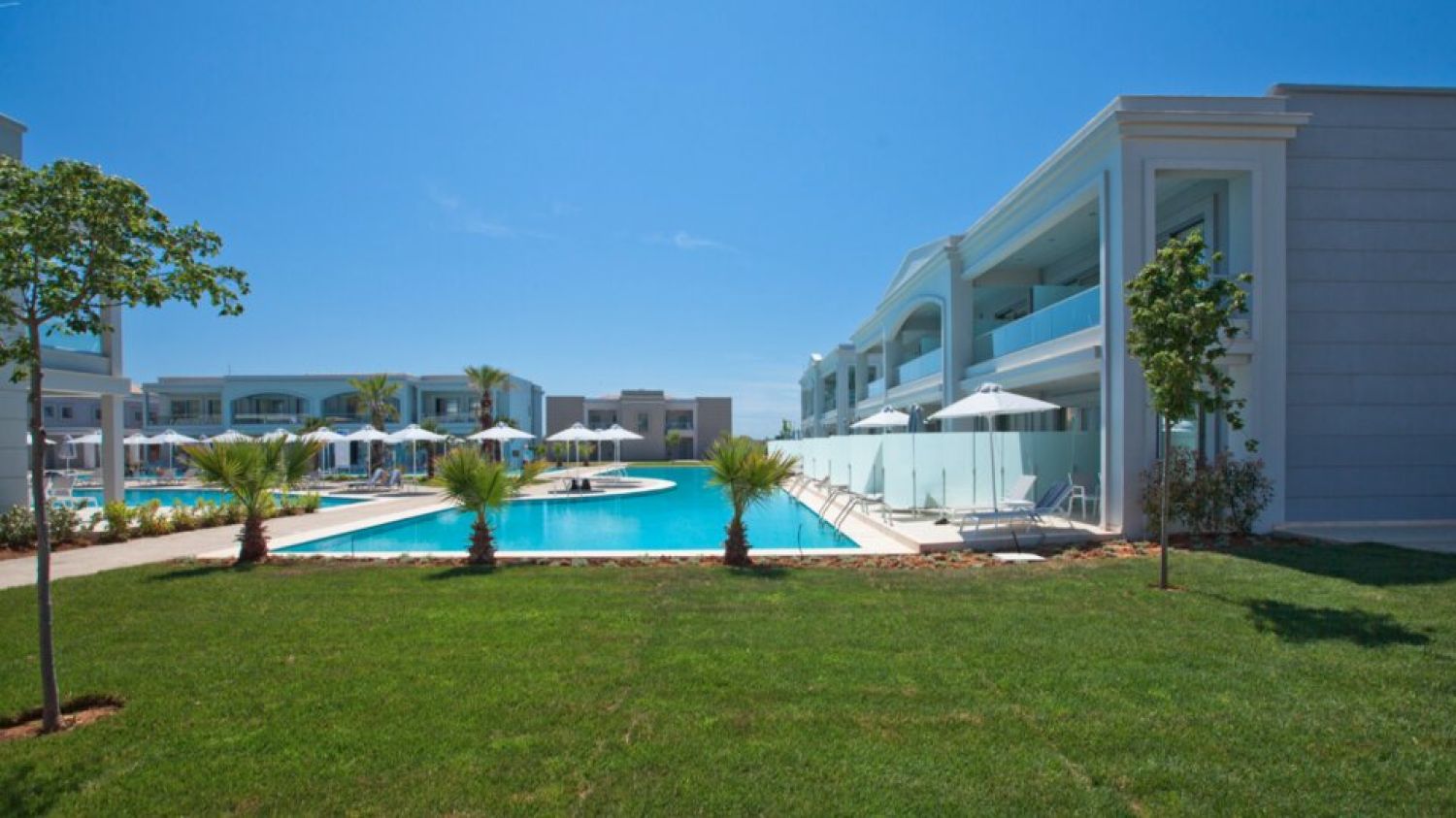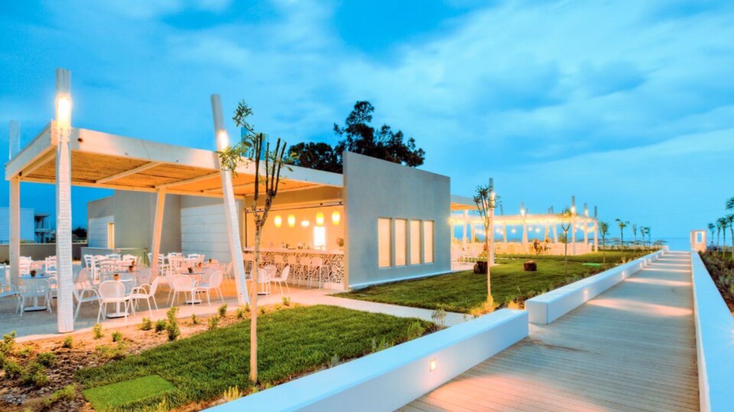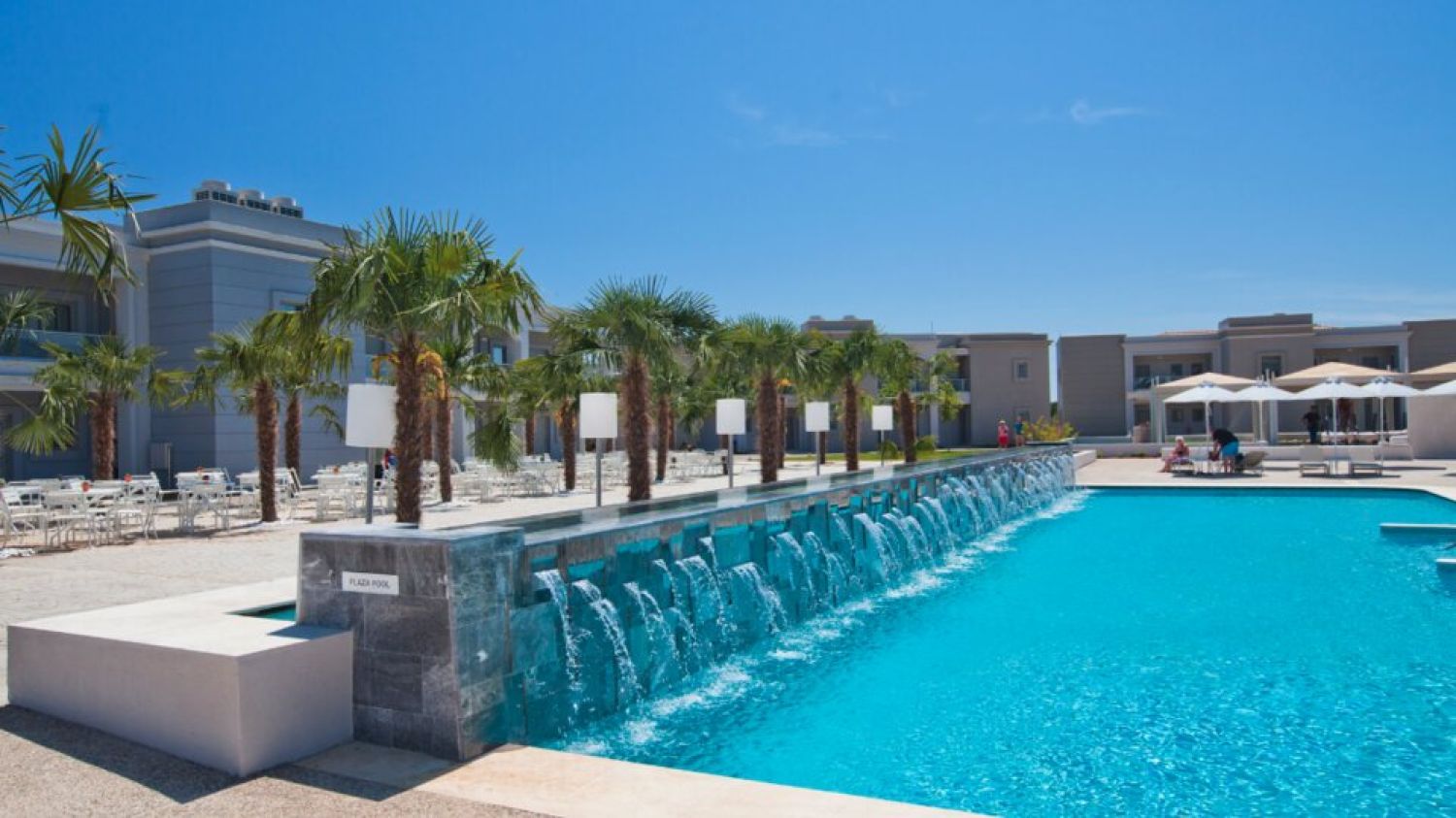 Golden sandy beach and the crystal clear water reflecting the deep green of the pine forest, Blue Lagoon Princess is a 5-star propery located on the beach of Kalives, Halkidiki only a short drive from Makedonia airport, on the Toronian Golf between the first and the second leg of the Halkidiki Peninsula. This newly built hotel offers everything the sophisticated tourist will expect; luxury and comfort, several pools and Spa, children’s facilities and sports, in a few words the ideal settings for social- and family events. Blue Lagoon Princess follows high quality standards while also promoting environmental friendly procedures. The hotel’s set in a peaceful spot, which means it’s got a lot of room to spread out. There’s a long sweep of sand right in front of it, which offers watersports and beach games, too. Thessaloniki airport is 61km away, while the village resort of Gerakini lies at 7km distance.