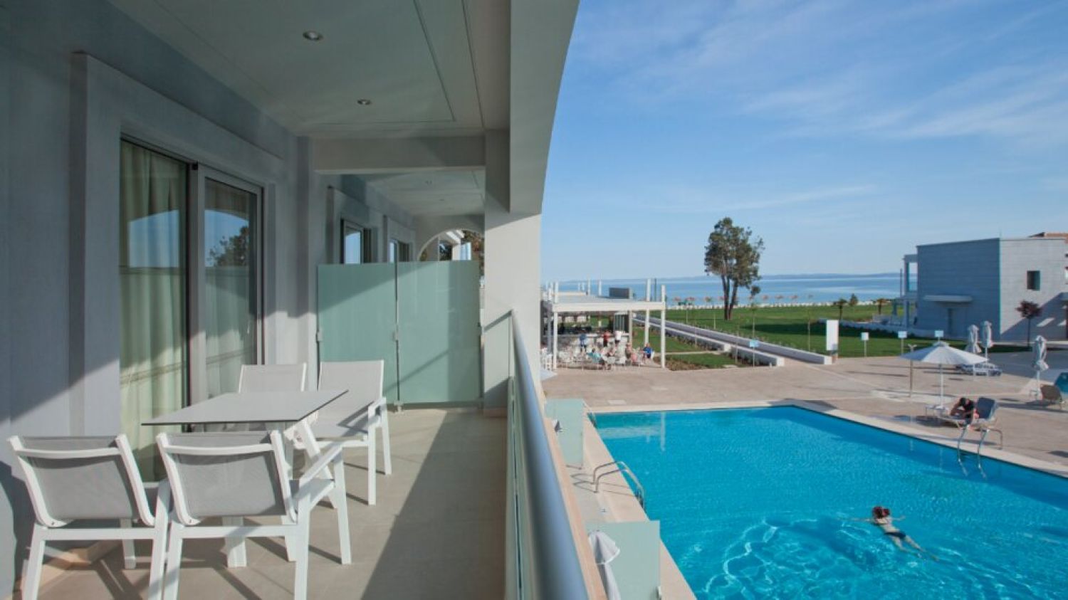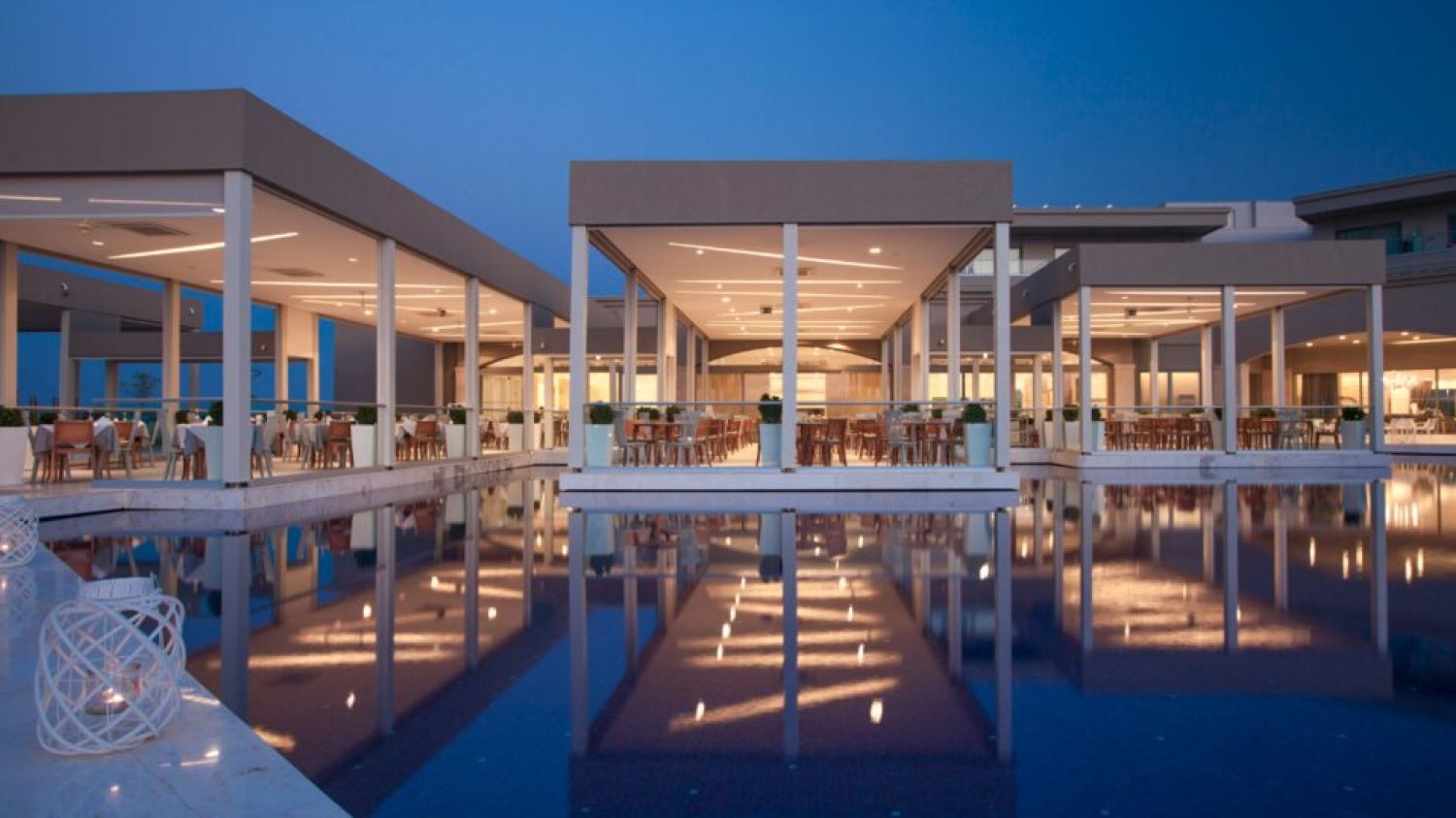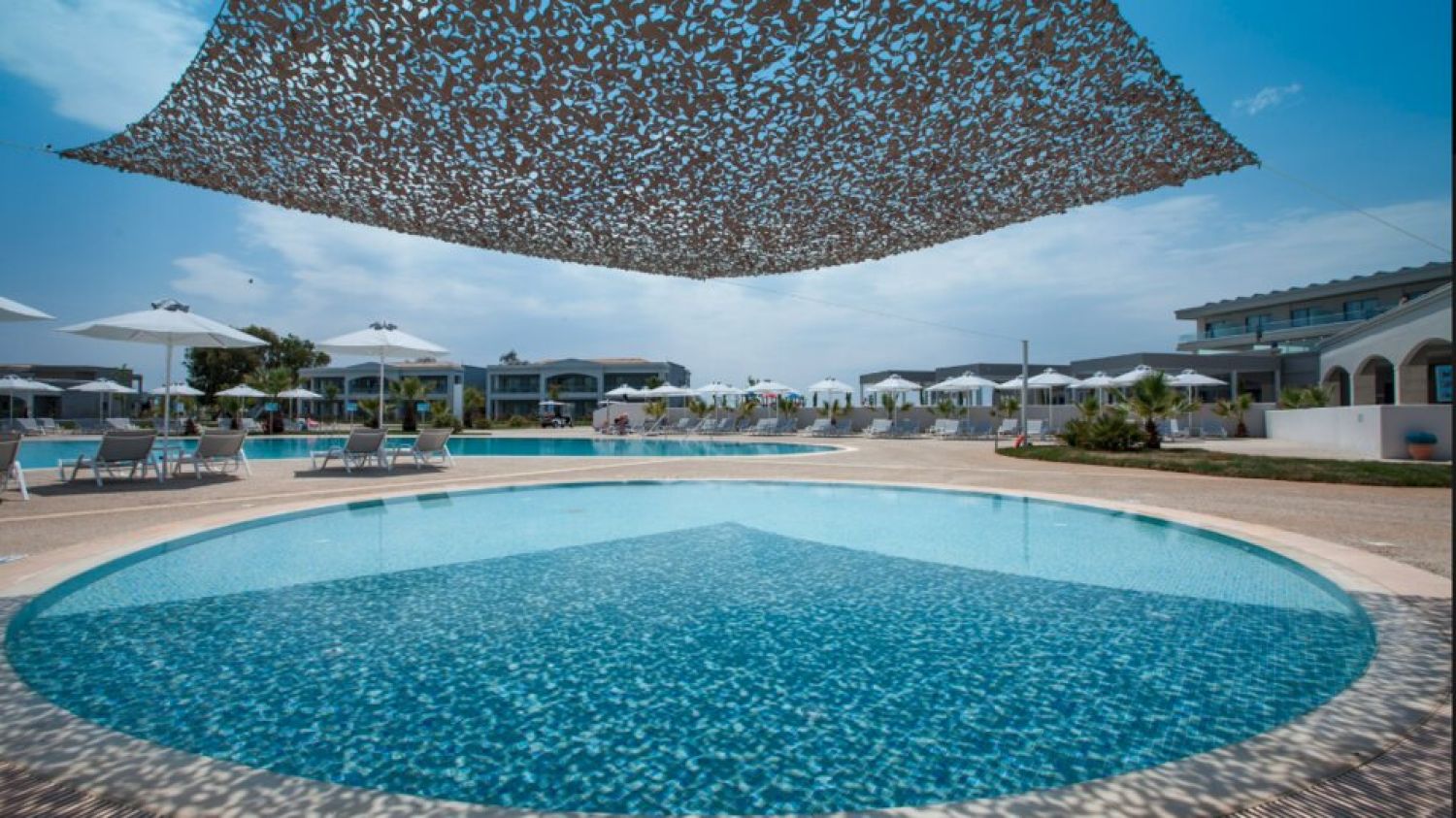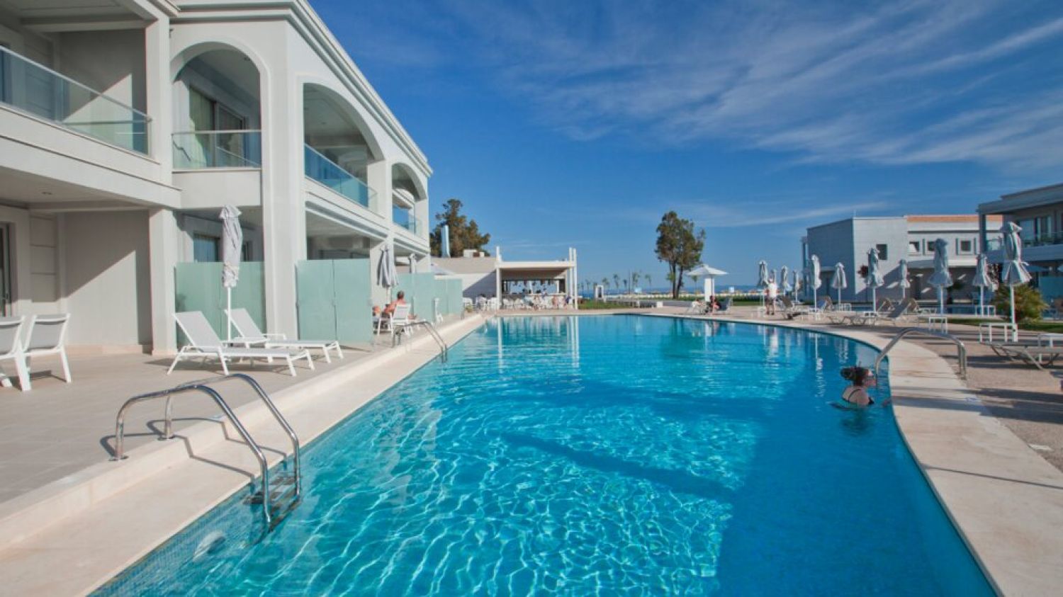 Golden sandy beach and the crystal clear water reflecting the deep green of the pine forest, Blue Lagoon Princess is a 5-star propery located on the beach of Kalives, Halkidiki only a short drive from Makedonia airport, on the Toronian Golf between the first and the second leg of the Halkidiki Peninsula. This newly built hotel offers everything the sophisticated tourist will expect; luxury and comfort, several pools and Spa, children’s facilities and sports, in a few words the ideal settings for social- and family events. Blue Lagoon Princess follows high quality standards while also promoting environmental friendly procedures. The hotel’s set in a peaceful spot, which means it’s got a lot of room to spread out. There’s a long sweep of sand right in front of it, which offers watersports and beach games, too. Thessaloniki airport is 61km away, while the village resort of Gerakini lies at 7km distance.
