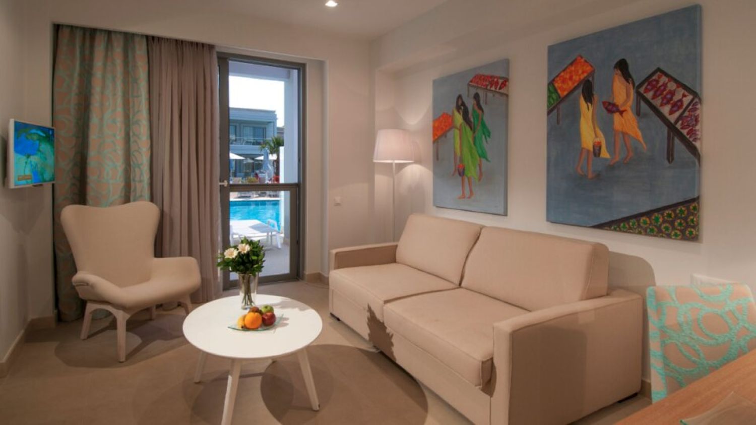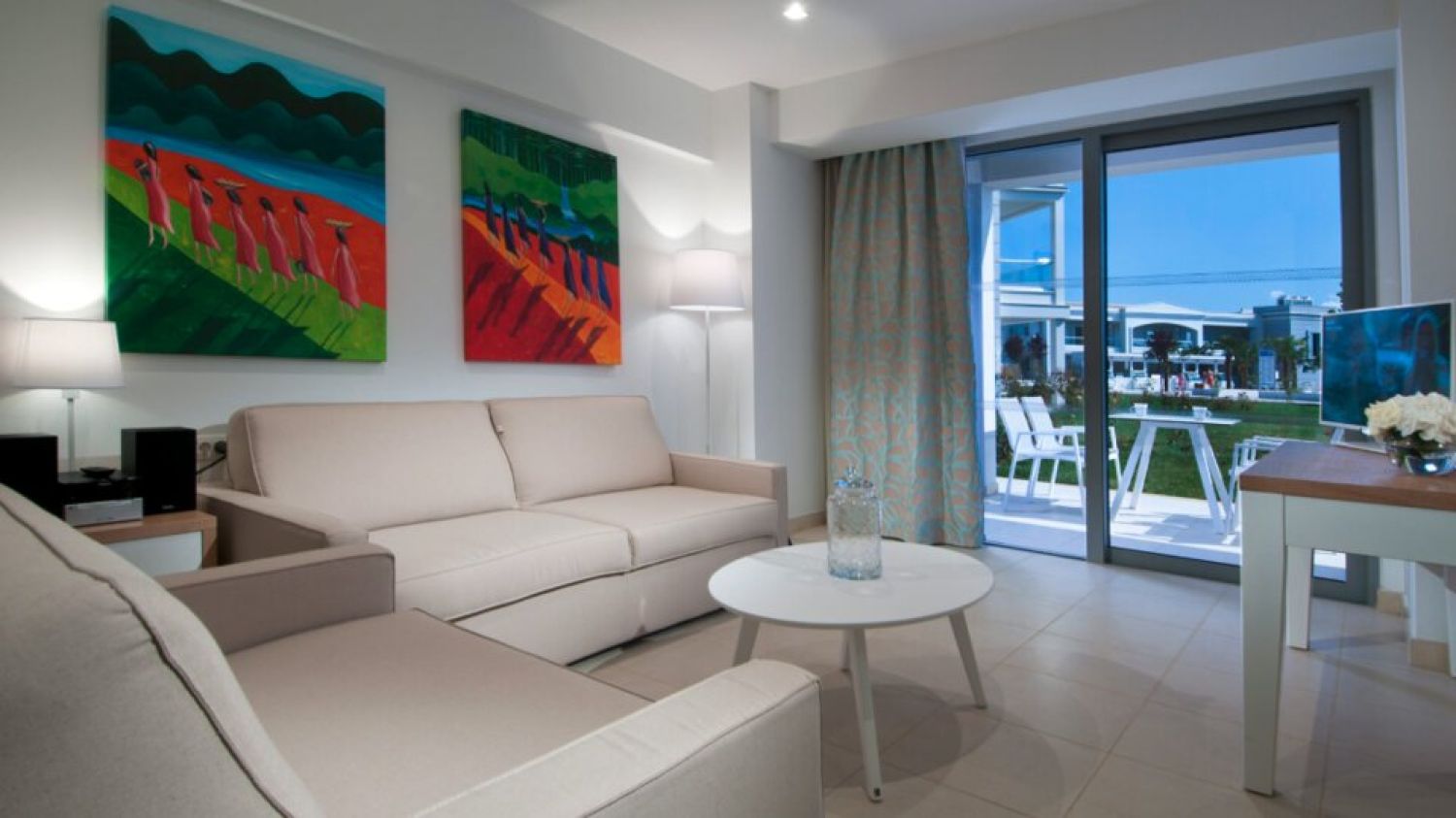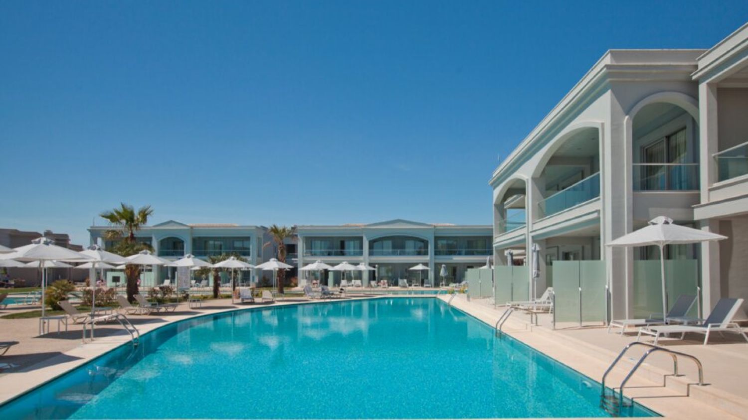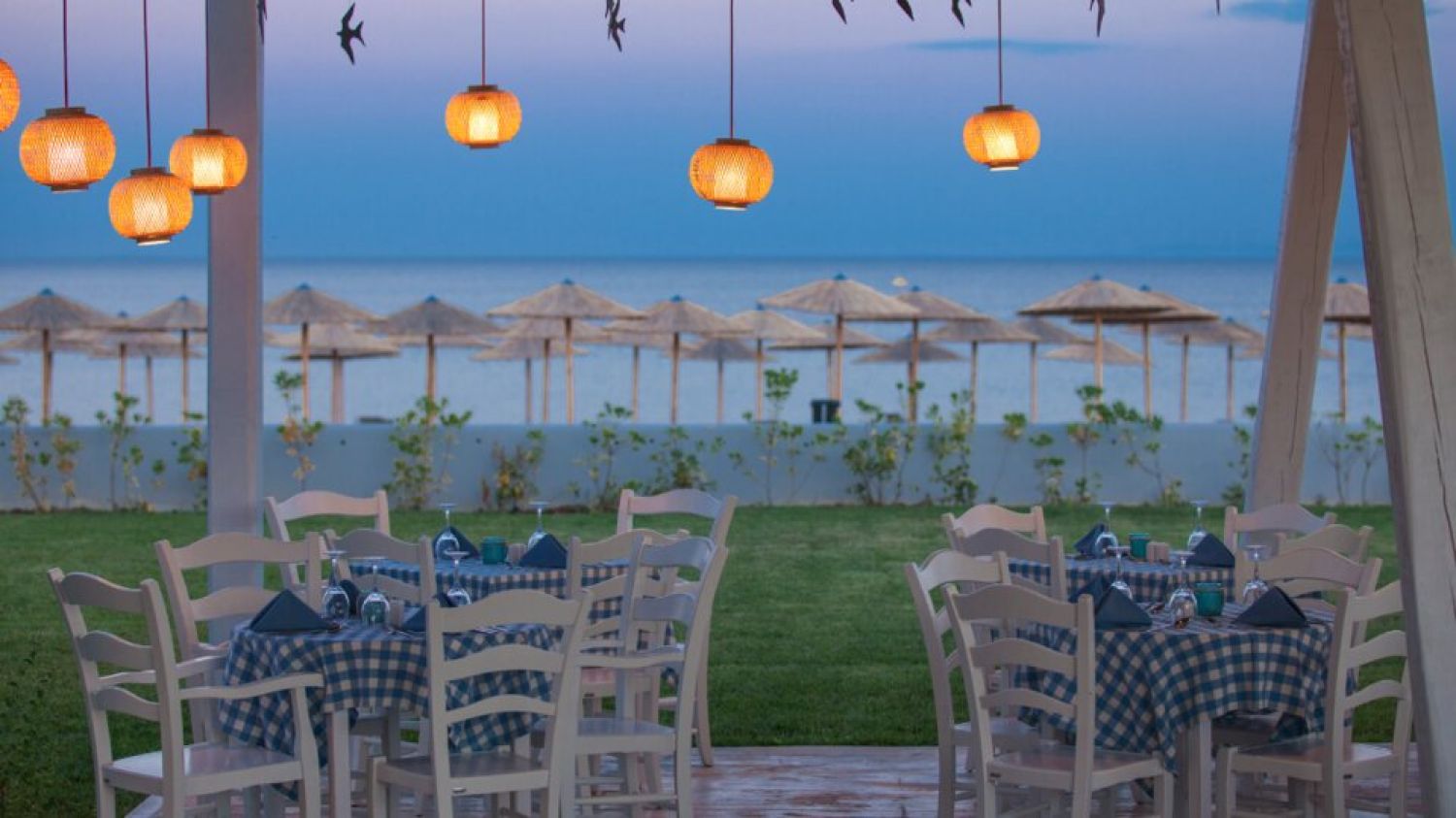Golden sandy beach and the crystal clear water reflecting the deep green of the pine forest, Blue Lagoon Princess is a 5-star propery located on the beach of Kalives, Halkidiki only a short drive from Makedonia airport, on the Toronian Golf between the first and the second leg of the Halkidiki Peninsula. This newly built hotel offers everything the sophisticated tourist will expect; luxury and comfort, several pools and Spa, children’s facilities and sports, in a few words the ideal settings for social- and family events. Blue Lagoon Princess follows high quality standards while also promoting environmental friendly procedures. The hotel’s set in a peaceful spot, which means it’s got a lot of room to spread out. There’s a long sweep of sand right in front of it, which offers watersports and beach games, too. Thessaloniki airport is 61km away, while the village resort of Gerakini lies at 7km distance.