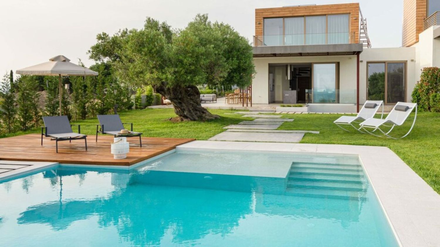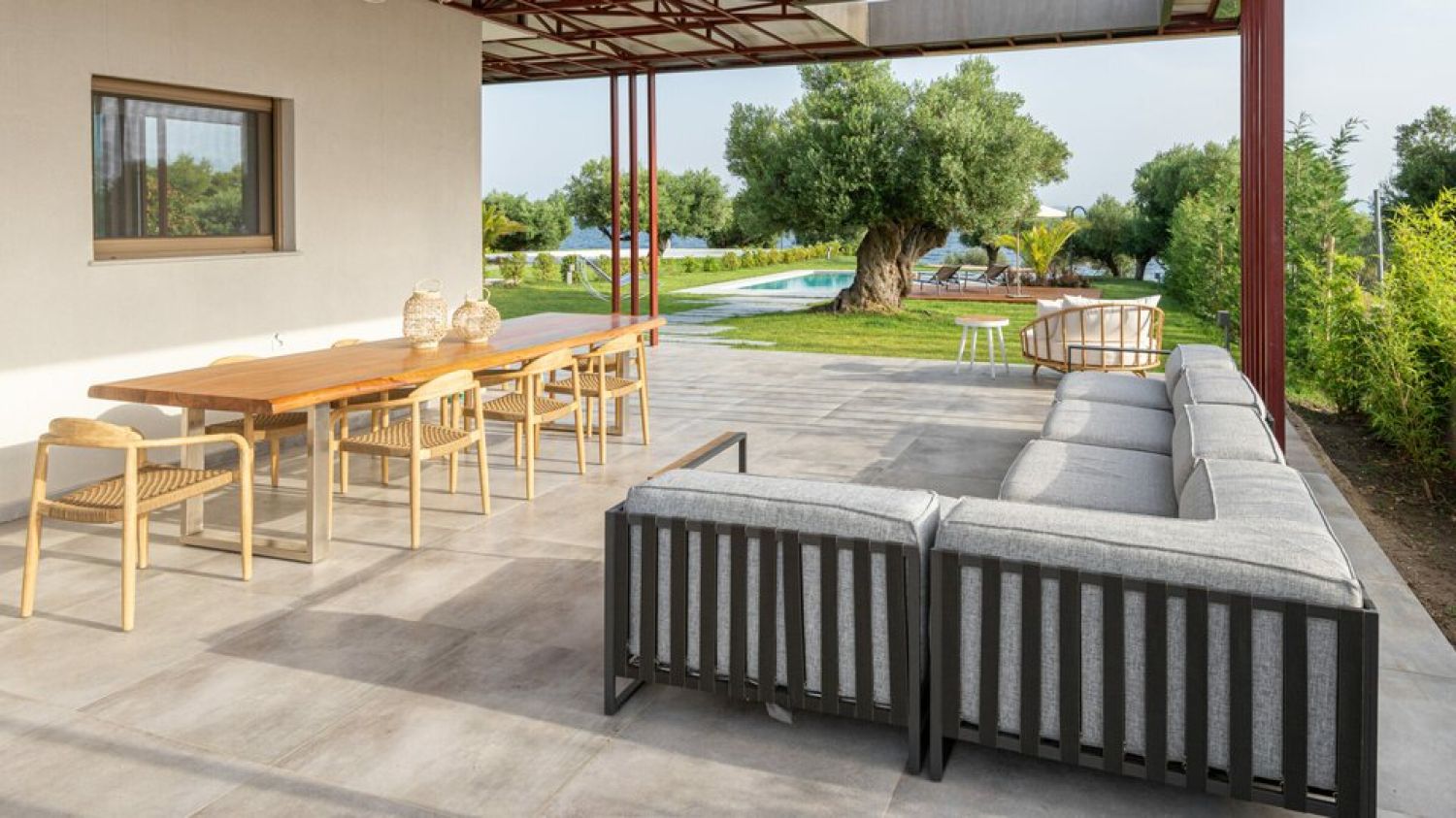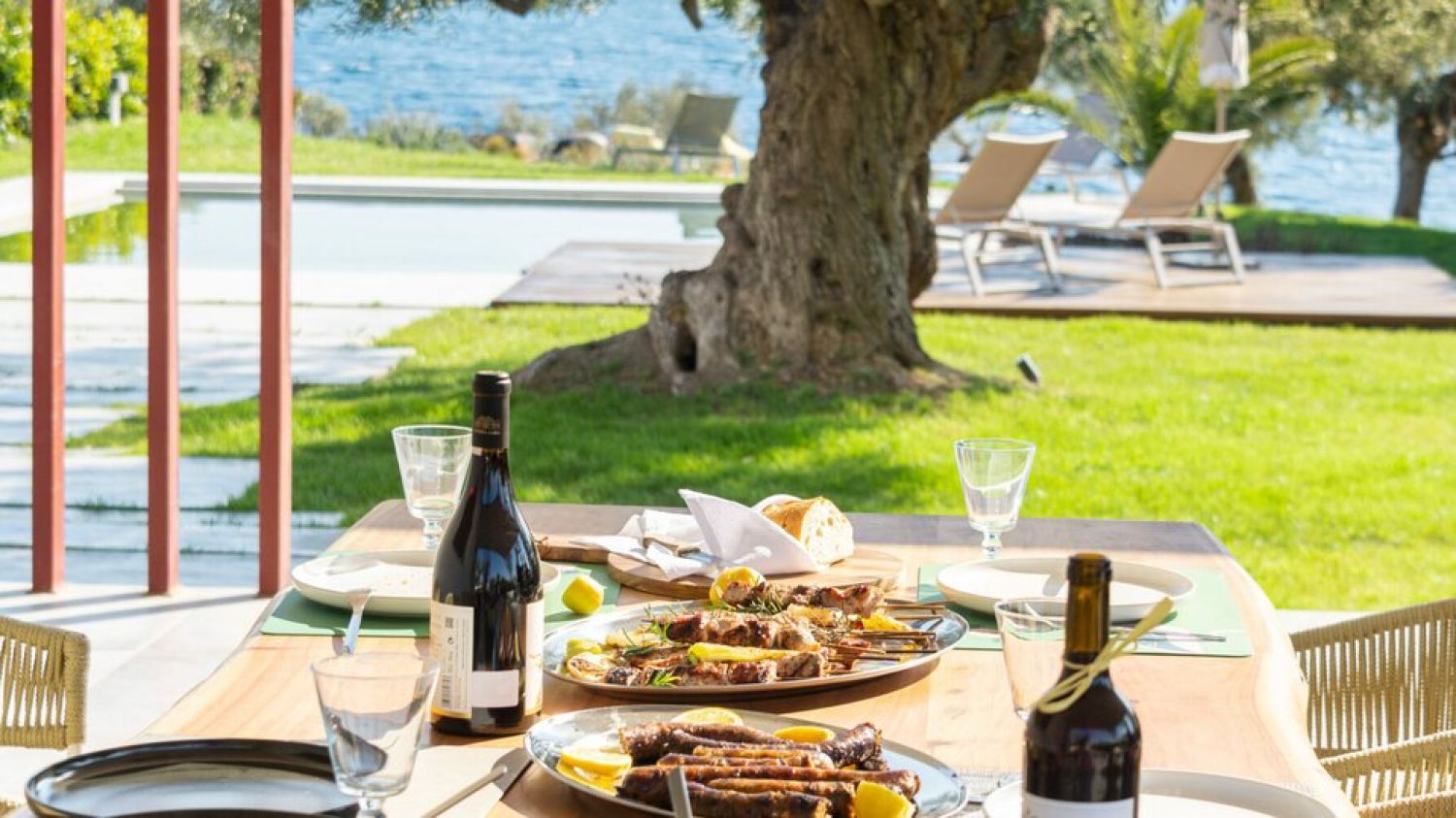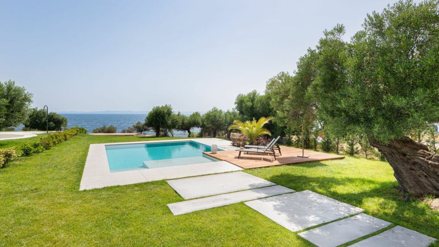 Luria Homes are located in a very favorable point, in a small peninsula projecting into the Aegean Sea, situated between the town of Nikiti and the one of Neos Marmaras, on the Sithonia peninsula, in Halkidiki, Greece. It is the perfect location for those who look for privacy but also want some social life in the nearby Nikiti or Neos Marmaras that are brimming with restaurants, taverns, cafes and bars and a variety of shops. These 3 residencies, surrounded with a natural landscape of exceptional beauty providing a range of high-end services, promise a vacation comparable to none. On one side, the breath-taking view of the lush dense Mount Athos of Sithonia with pine and olive trees will impress you. On the other side, the view on the turquoise waters of the Aegean Sea and their private beach will let your eyes rest. The interior of the houses was designed with modern and minimal decoration creating a unique, perfectly harmonious result which offers balance and peace. Luria Homes are surrounded by a private area of 6 sq.km, with lush vegetation and a lovely themed garden with a collection of aromatic herbs such as lavender and rosemary or olive trees, some of the oldest in Sithonia, estimated over 1000 years old. At the backside of the resort, the ruins of an early Christian church were discovered and unearthed. It is possible to viewing them only being on the property of Luria Homes.