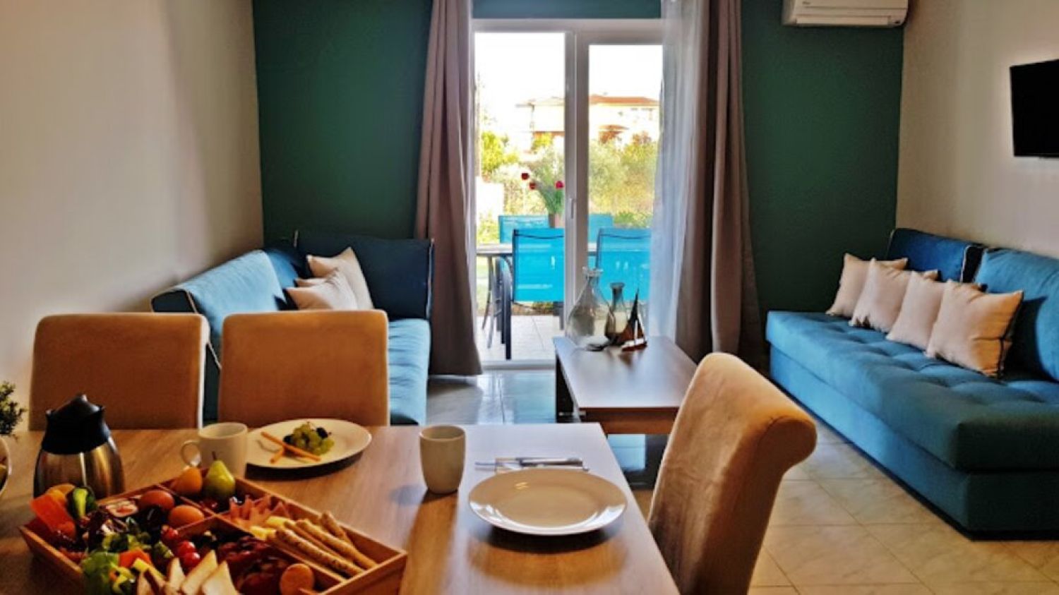 Located in a renovated villa, just 130m from the beach, Village Mare Metaxia consists of three luxury apartments: two on the ground floor 50m2 each and one comprising the entire top floor of 100m2. All are fully furnished and come with everything you need for a comfortable stay. Relax by the private pool, on the balcony or terrace tables and enjoy your breakfast, while relishing the splendid view of our green garden and the Toroneos Gulf. Then take a short walk to the beach for a swim.