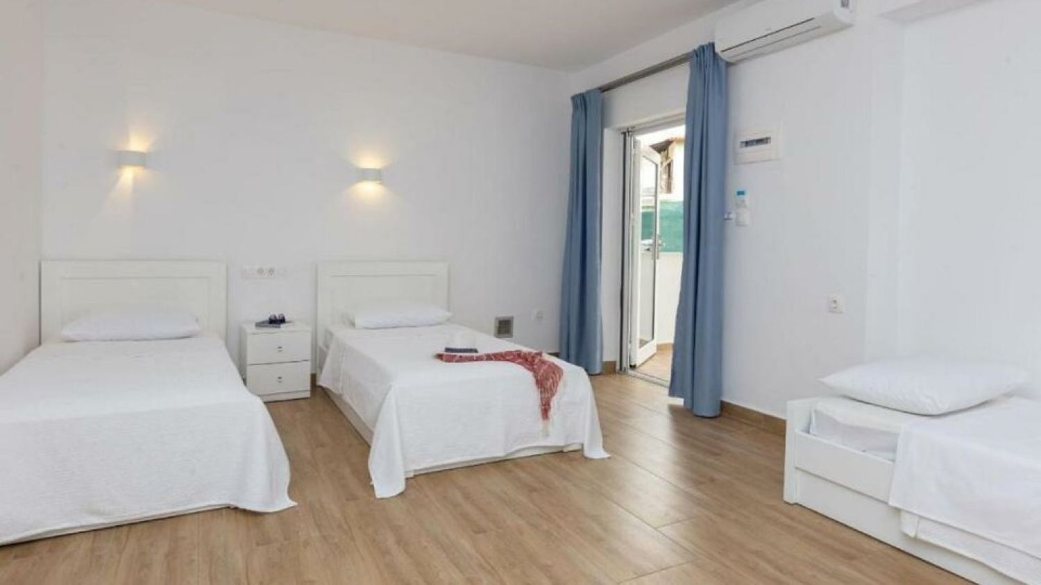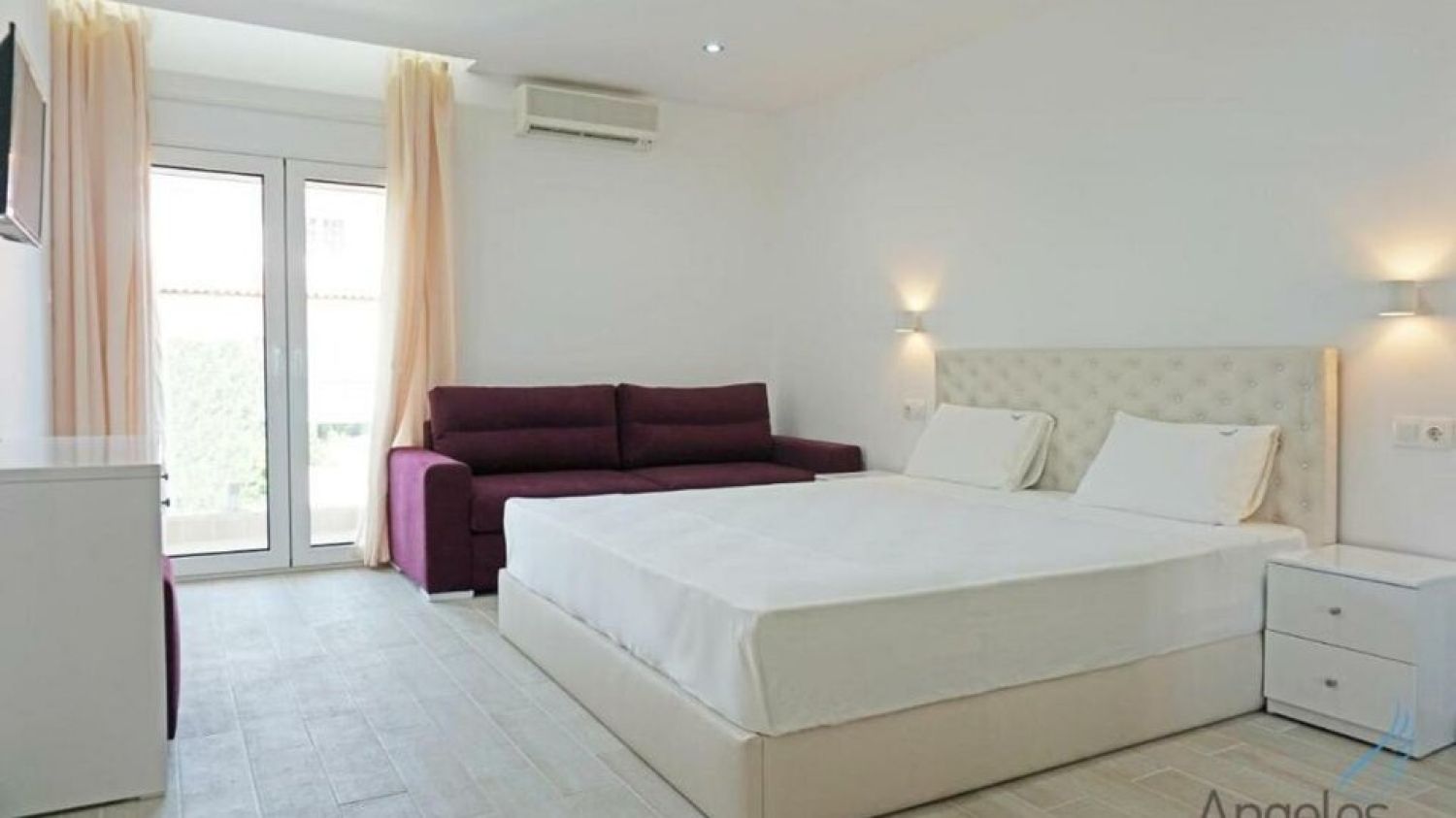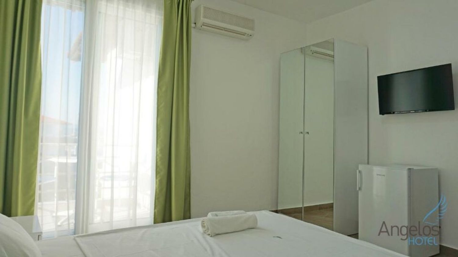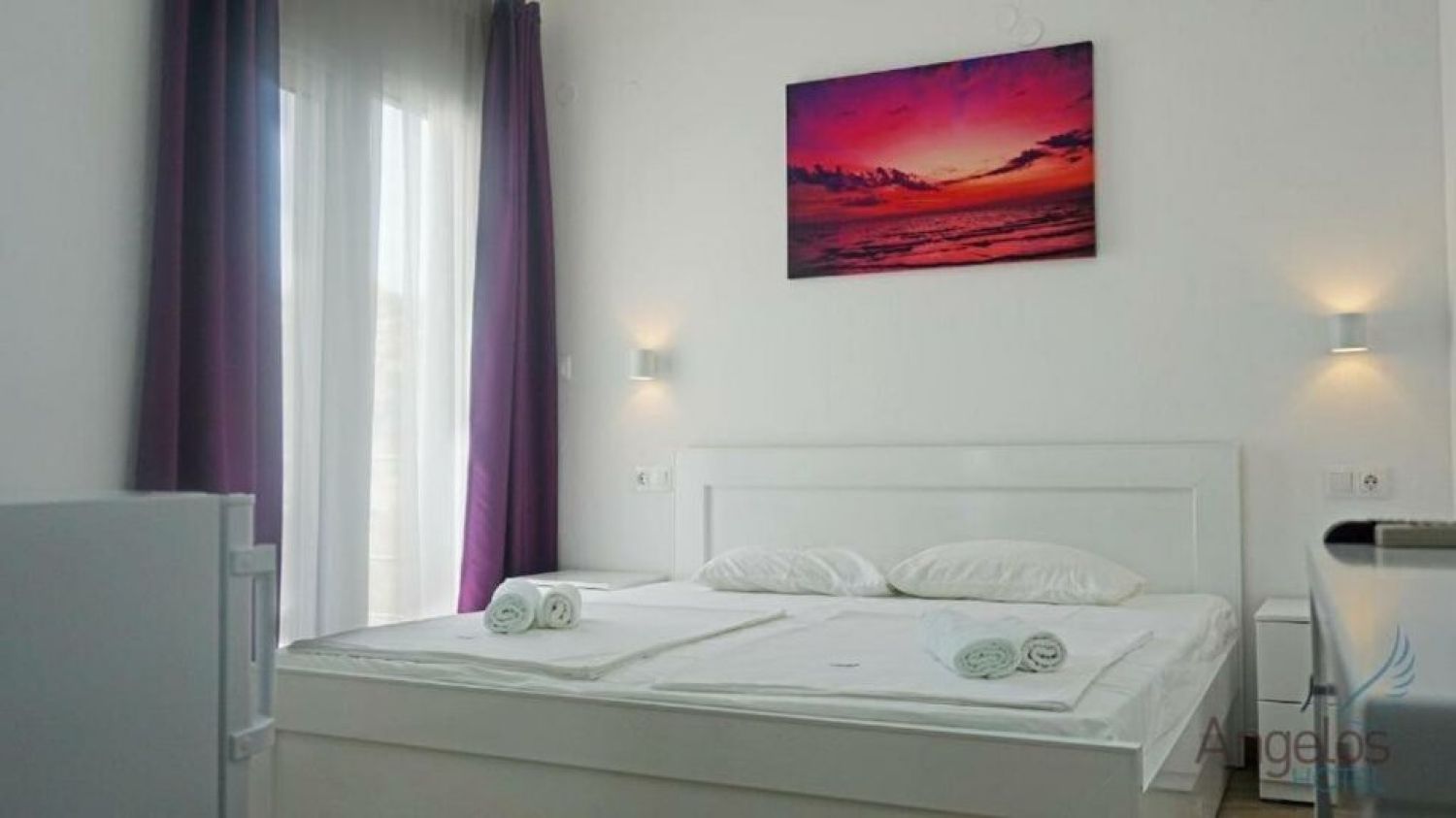 Hotel Angelos is located in Ormos Panagias. It has 40 rooms - Double, Triple and Family offering a SV, SSV, GD and MV. Rooms are spacious and bright, redecorated recently. Each room is equipped with A/C, mini fridge, DBL or TWIN beds, a wardrobe, plasma TV, a shower, a table and chairs on the balcony or veranda. The restaurant serves breakfast included in the room rate.There is a sandy sea in front of the hotel where a guest can have a swim though there are no sunbeds. Within a 3 minute walk there is a long sandy beach of Trani Ammouda (on the left) and Lagonisi (on the right).