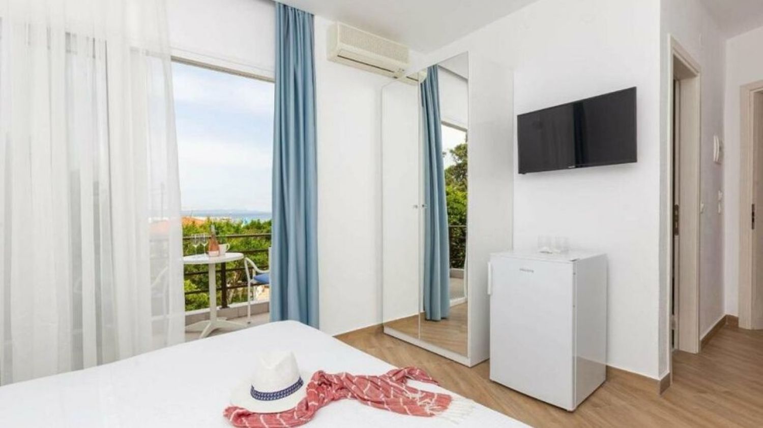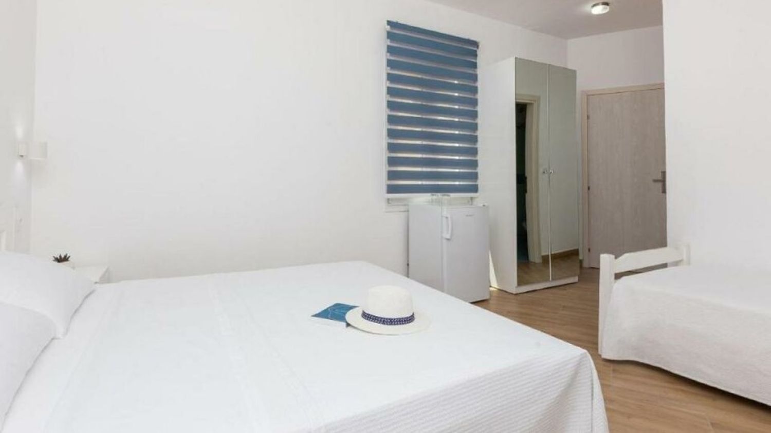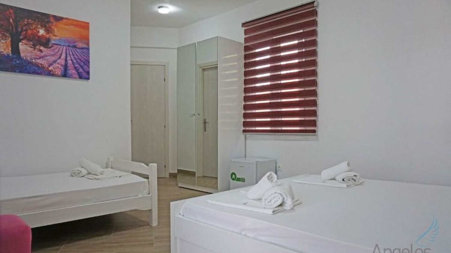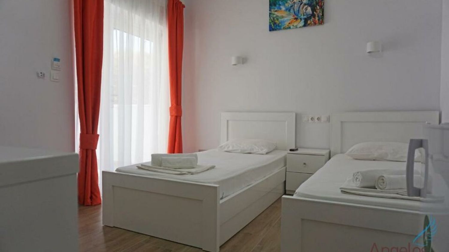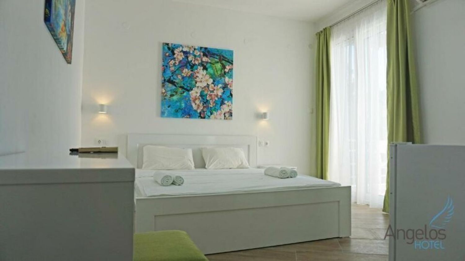 Hotel Angelos is located in Ormos Panagias. It has 40 rooms - Double, Triple and Family offering a SV, SSV, GD and MV. Rooms are spacious and bright, redecorated recently. Each room is equipped with A/C, mini fridge, DBL or TWIN beds, a wardrobe, plasma TV, a shower, a table and chairs on the balcony or veranda. The restaurant serves breakfast included in the room rate.There is a sandy sea in front of the hotel where a guest can have a swim though there are no sunbeds. Within a 3 minute walk there is a long sandy beach of Trani Ammouda (on the left) and Lagonisi (on the right).