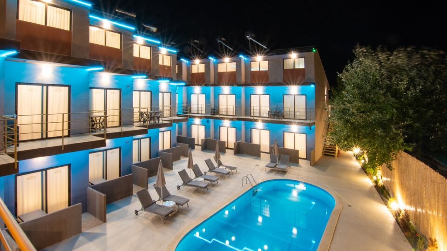 Set on top of the Kalamitsi bay, on the southern-most tip of Sithonia, hotel Palladium is a newly built property, offering epic sea views and great vibes only. The hotel features 24 brand new rooms and suites, a well maintained outdoor pool and pool bar, 24h reception, parking places and a restaurant serving breakfast. Kalamitsi is located on the southern tip of Sithonia. Situated in a beautiful bay, the water is quite sheltered and calm. The bay has a direct opening to the sea, which allows for remarkably clear water. Thessaloniki airport is 140km away, while the charming fishing village of Porto Koufo is at 12km distance.