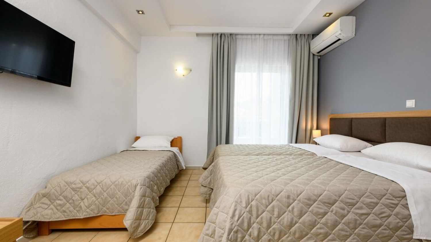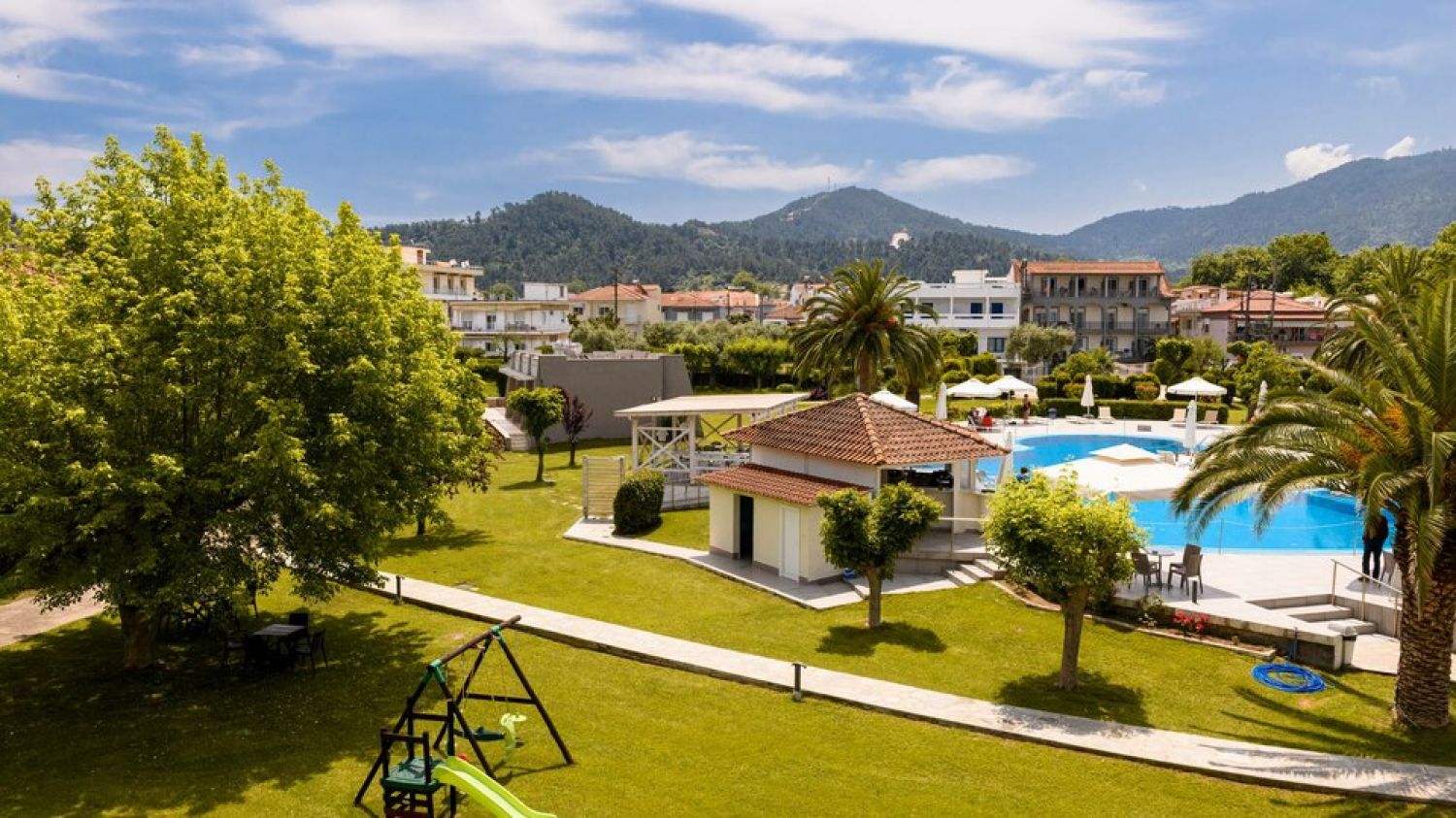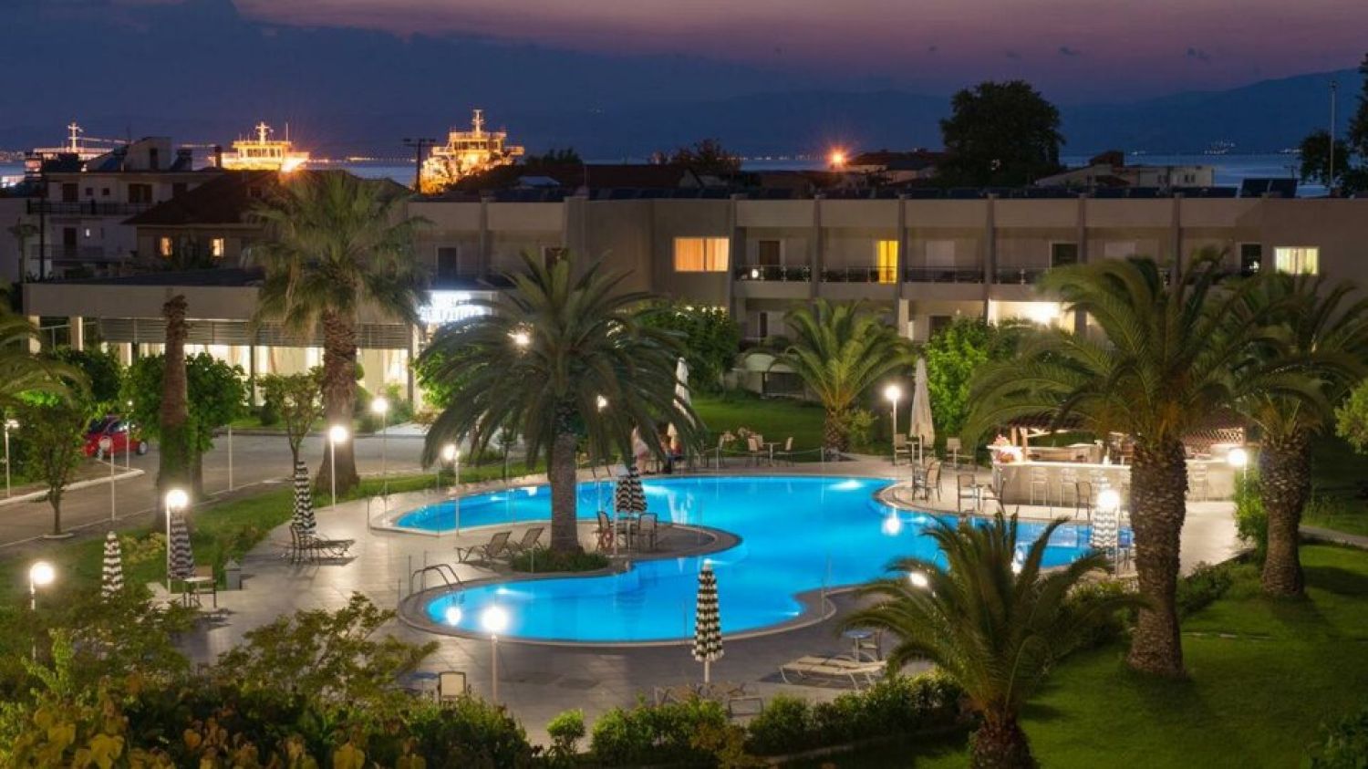 Разположен сред внимателно поддържани, украсени с палми терени, този приветлив 3-звезден хотел предлага спокойно убежище само на 8 минути пеша от фериботния терминал на Лименас. Той е удобно разположен и само на 9 минути пеша от Археологическия музей на Тасос и на кратко 3-километрово разстояние с кола от слънчевия плаж Макириамос. Главната сграда предлага 50 наскоро обновени стаи, разположени в три зелени акра на плодородни градини, създавайки спокойна атмосфера. Хотелът разполага с открит басейн с шезлонги и чадъри, както и с достатъчно паркинг. Тасос, разположен в северната част на Егейско море, се отличава със своята неповторима природна красота, съчетавайки богатата зеленина на борове и маслинови дървета с златистите си пясъчни брегове и изумрудените води. Островът е удобно разположен само на 18 морски мили от Кавала, на 6 мили от Керамоти и летището на Кавала.