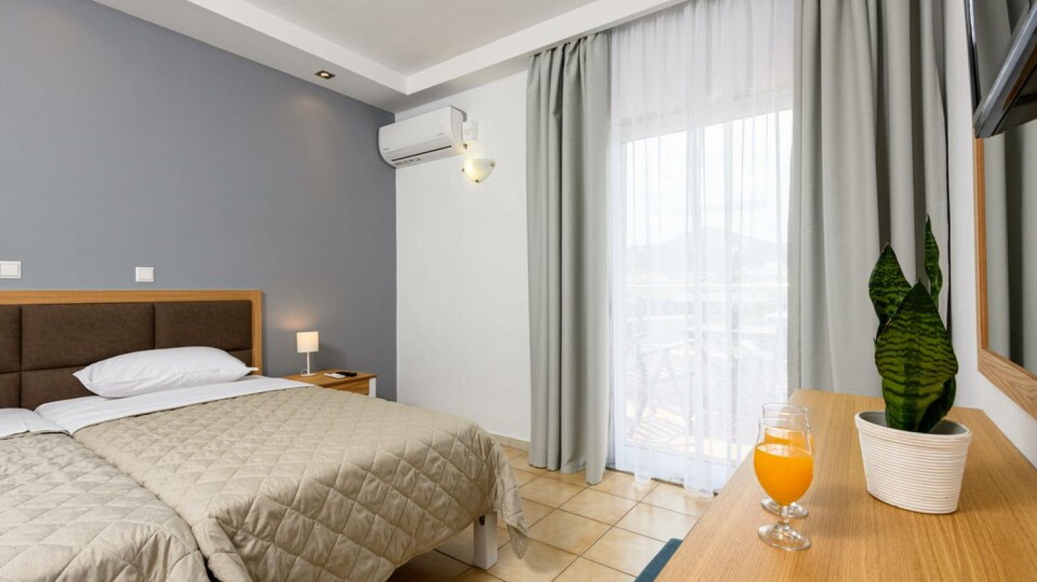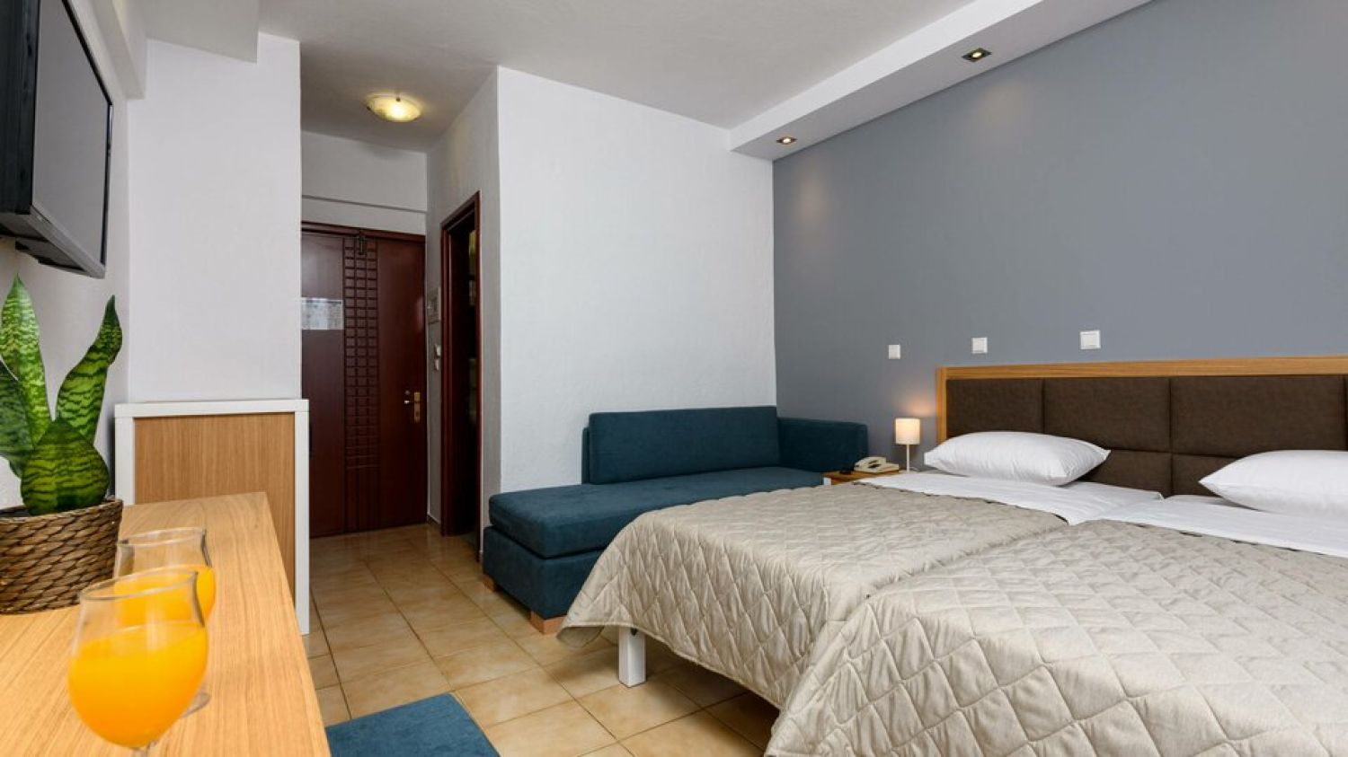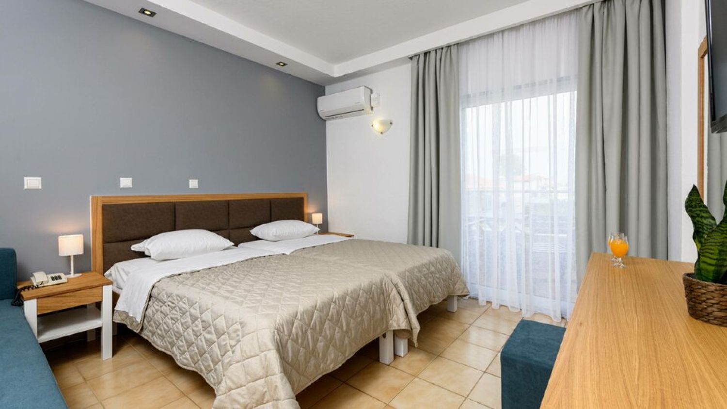 Разположен сред внимателно поддържани, украсени с палми терени, този приветлив 3-звезден хотел предлага спокойно убежище само на 8 минути пеша от фериботния терминал на Лименас. Той е удобно разположен и само на 9 минути пеша от Археологическия музей на Тасос и на кратко 3-километрово разстояние с кола от слънчевия плаж Макириамос. Главната сграда предлага 50 наскоро обновени стаи, разположени в три зелени акра на плодородни градини, създавайки спокойна атмосфера. Хотелът разполага с открит басейн с шезлонги и чадъри, както и с достатъчно паркинг. Тасос, разположен в северната част на Егейско море, се отличава със своята неповторима природна красота, съчетавайки богатата зеленина на борове и маслинови дървета с златистите си пясъчни брегове и изумрудените води. Островът е удобно разположен само на 18 морски мили от Кавала, на 6 мили от Керамоти и летището на Кавала.