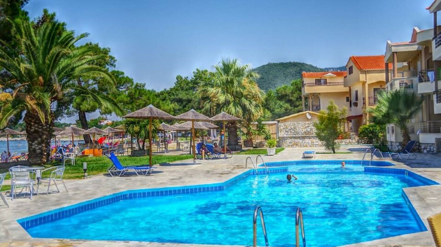 Perched on the beachfront in Skala Rachoniou of Thassos, the Rachoni Bay Resort unfolds its charms with a swimming pool adorned by a pool bar and a private beach area boasting water sports facilities. The allure continues with generously spaced accommodations, a fitness center for the health-conscious, and the culinary delights of two restaurants.