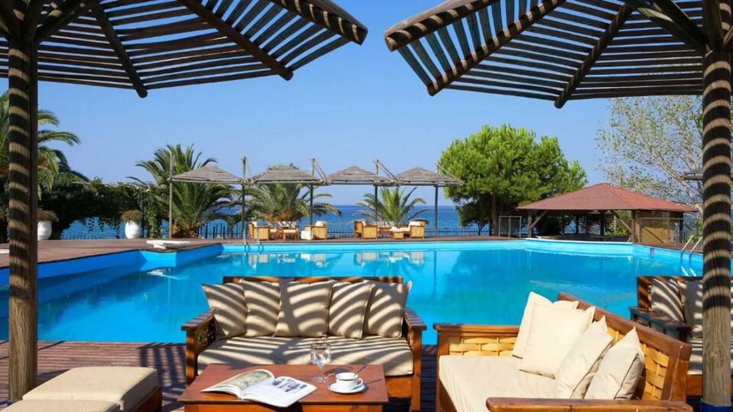 - Umbrellas and beach sets: at the swimming pool