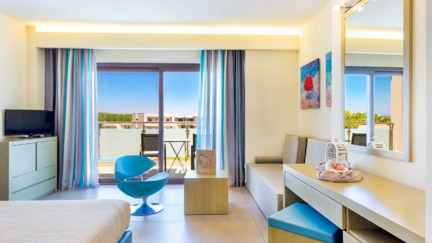 Разположен на западното крайбрежие на Тасос и разположен на великолепна плажна ивица с пясъчен плаж, този уникален ваканционен комплекс, построен в модерен стил и разположен в обширна територия (35 000 м²), предлага широк набор от съоръжения и удобства. Хотел и суити Alea е новопостроен в модерен и елегантен стил, състоящ се от 175 стаи и суити, разположени в 12 малки сгради с 1 до 2 етажа. Идеален за семейства и двойки, търсещи релаксираща почивка, той се намира само на 850 м от центъра на Скалa Принou и на 12 км от главното пристанище на Лимeнас. Хотелът е разположен на красив, дълъг, плавно наклонен пясъчен плаж, предлагащ истинско преживяване за почивка.