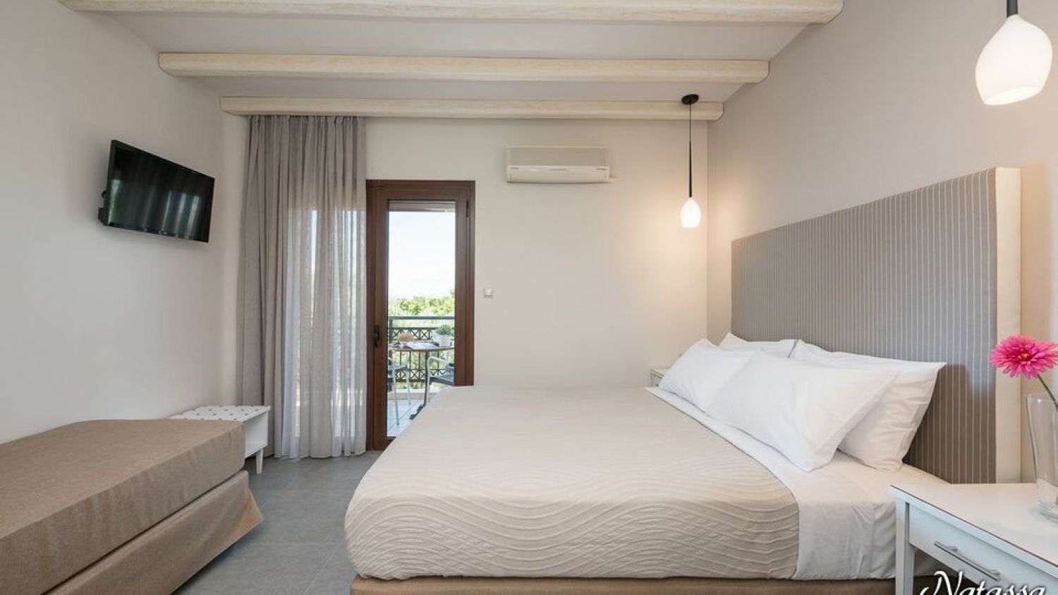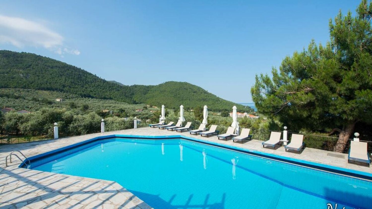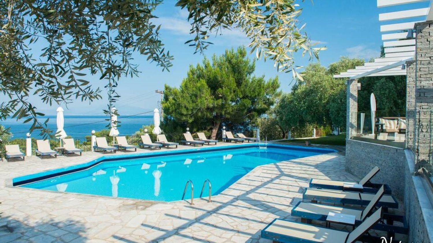 Hotel Villa Natassa is located in the Pahi region in Skala Rahoni, Thassos. Built on an olive grove with a panoramic view of the North Aegean Sea, the hotel is located about 250 meters from the famous beach of Glyfoneri with it’s natural beauty. It consists of 2 buildings with accommodation units.