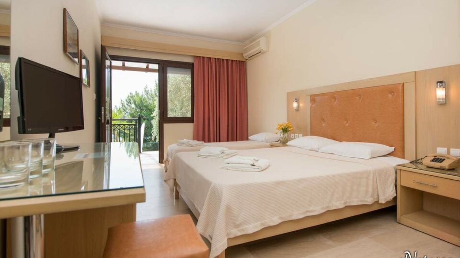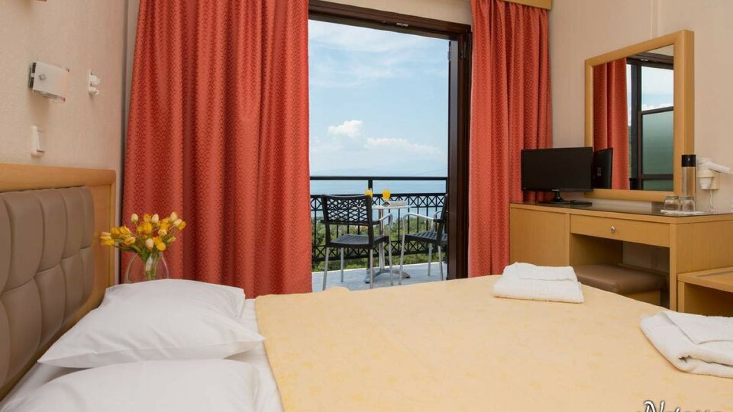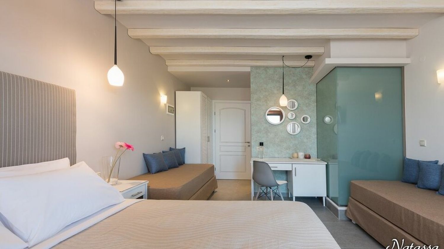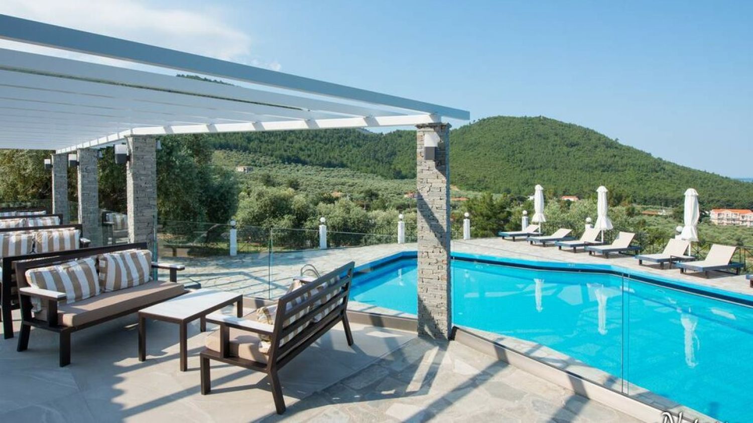 Hotel Villa Natassa is located in the Pahi region in Skala Rahoni, Thassos. Built on an olive grove with a panoramic view of the North Aegean Sea, the hotel is located about 250 meters from the famous beach of Glyfoneri with it’s natural beauty. It consists of 2 buildings with accommodation units.