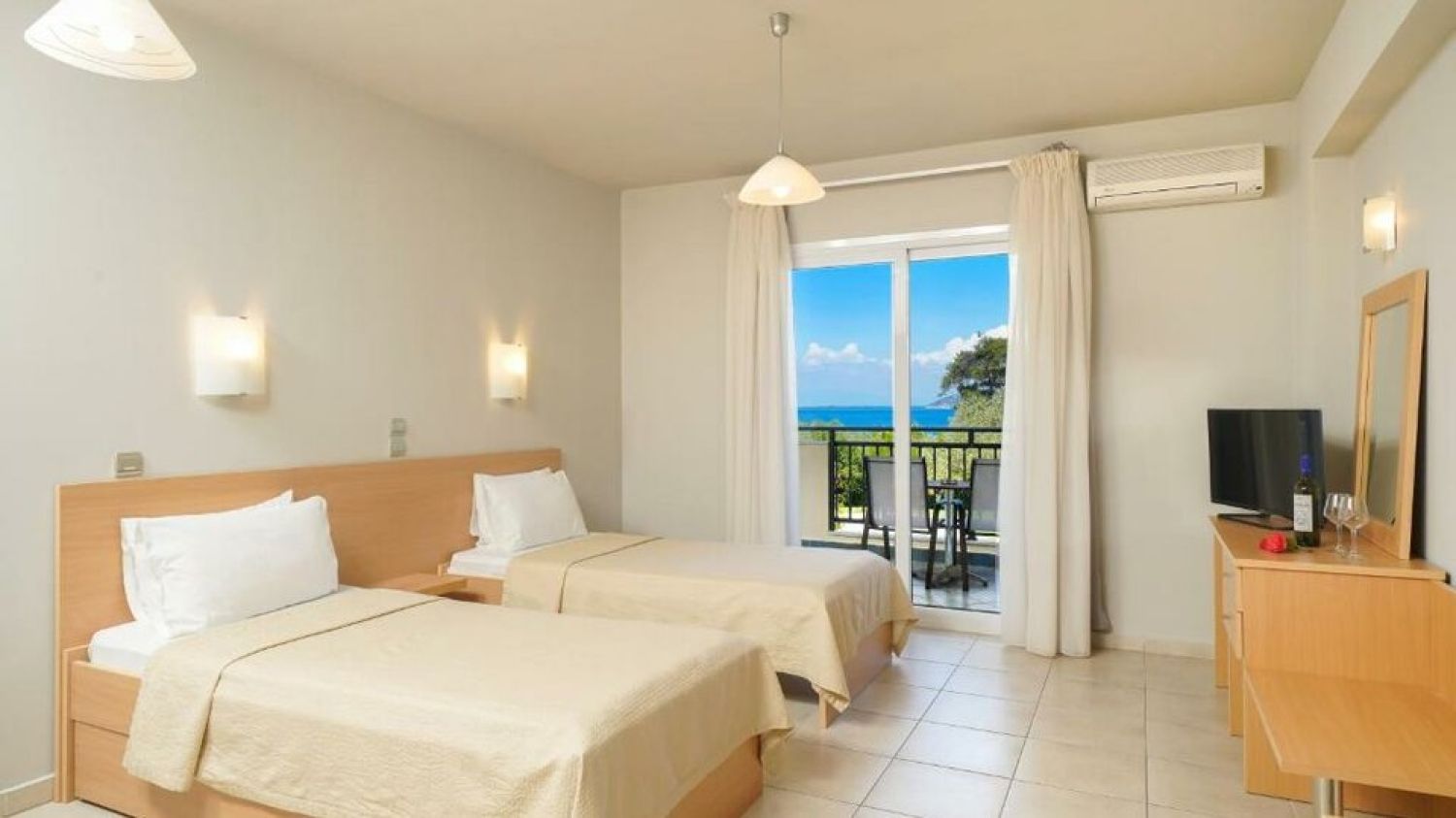 Kohylia Beach Hotel presents generously spaced accommodations, each thoughtfully furnished with air conditioning to keep you comfortable. These well-appointed rooms boast sea-view balconies, granting you breathtaking vistas of the azure waters. Inside, you'll find essential amenities like a TV, fridge, and a hairdryer.