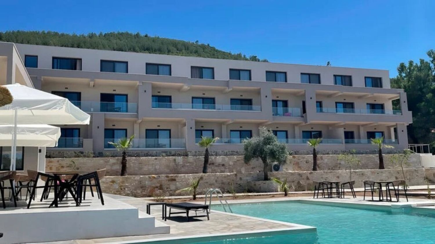 Situated in the picturesque town of Skala Rachoni, this modern 3-star hotel, built in 2023-2024, offers guests an ideal location just 200 meters from the sandy beach at the sister hotel, Rachoni Bay