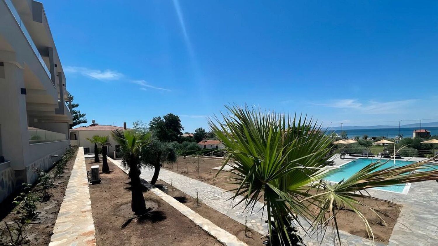 - Umbrellas and beach sets: at the Rachoni Bay Hotel