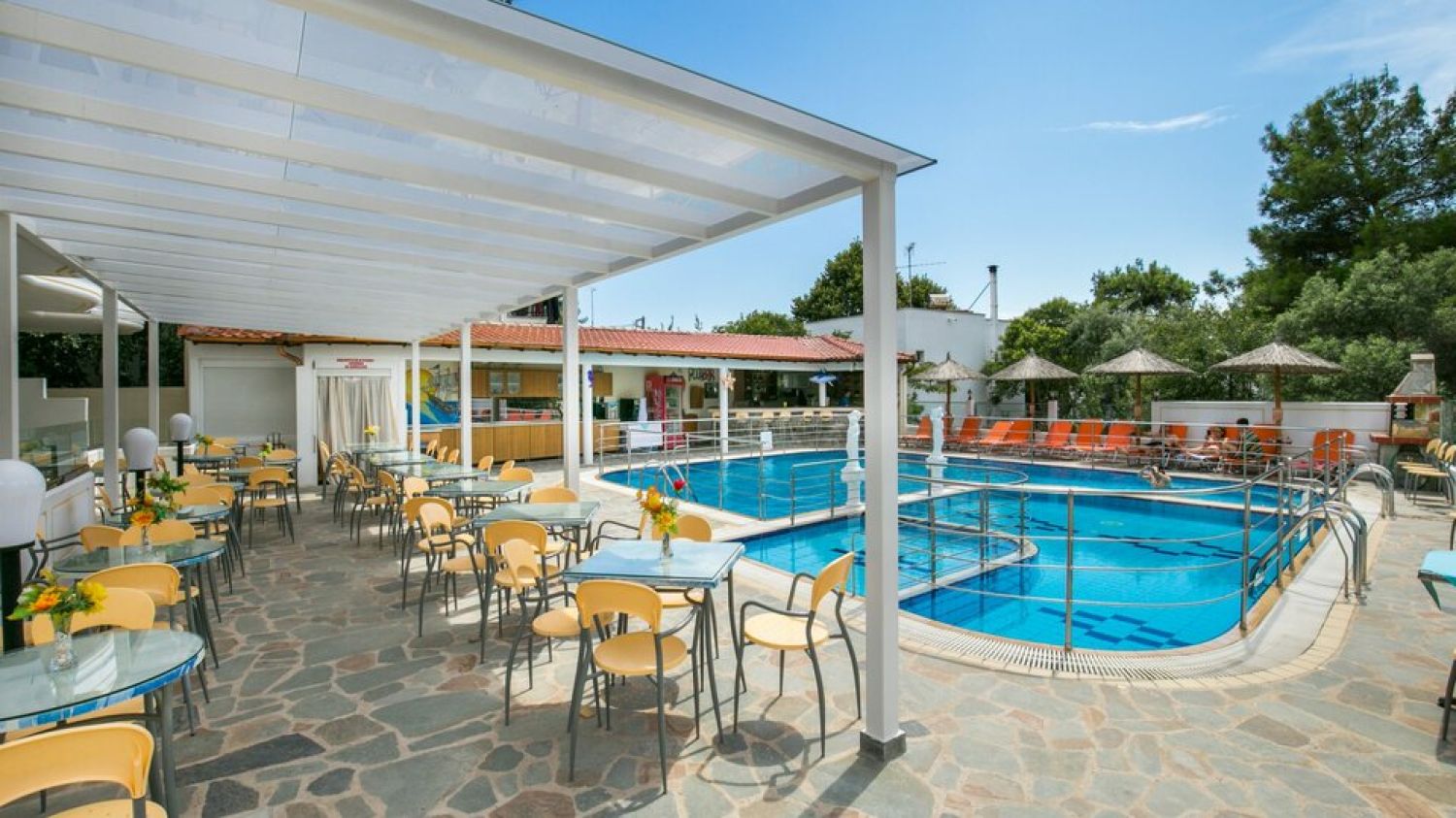 - Umbrellas and beach sets: at the Rachoni Bay Hotel