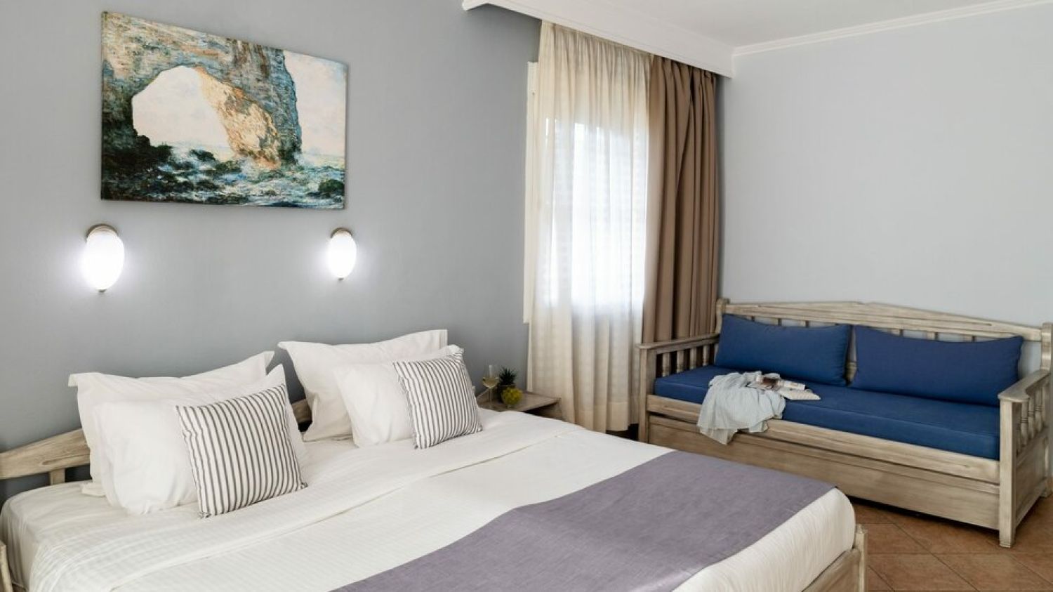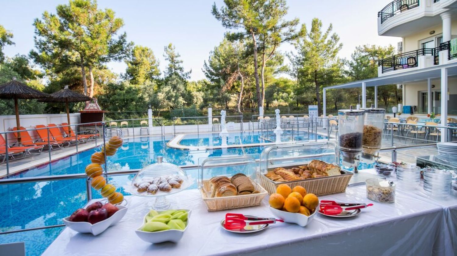Hotel Sirines Complex is a welcoming and ideally situated hotel at the entrance of Potos village on Thassos Island, offering spacious, well-equipped accommodations and top-notch service. Located just 80 meters from the seafront and 250 meters from the village center, guests have easy access to local cafés, bars, and dining options.
