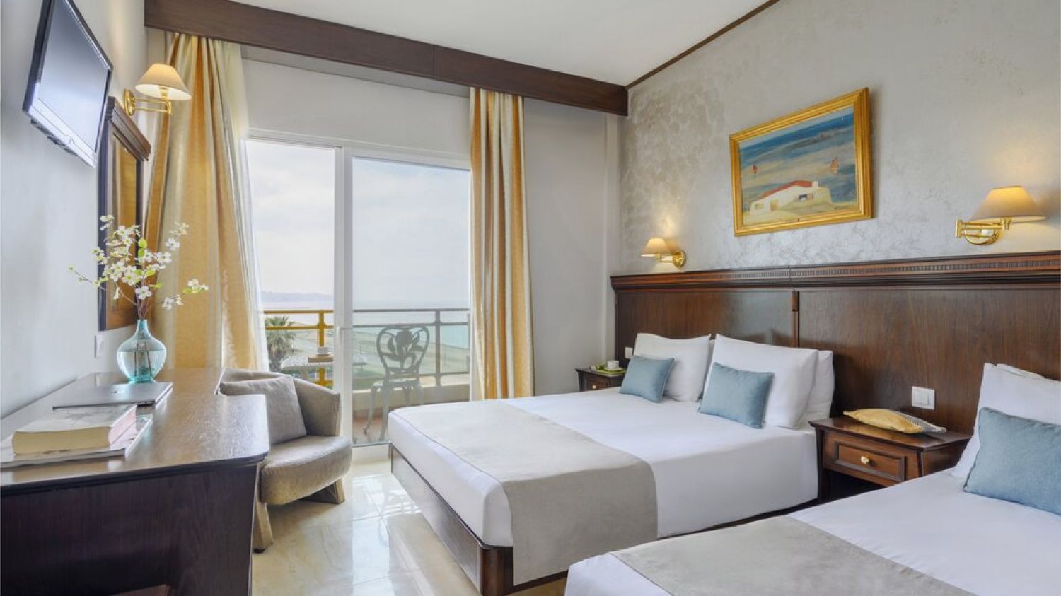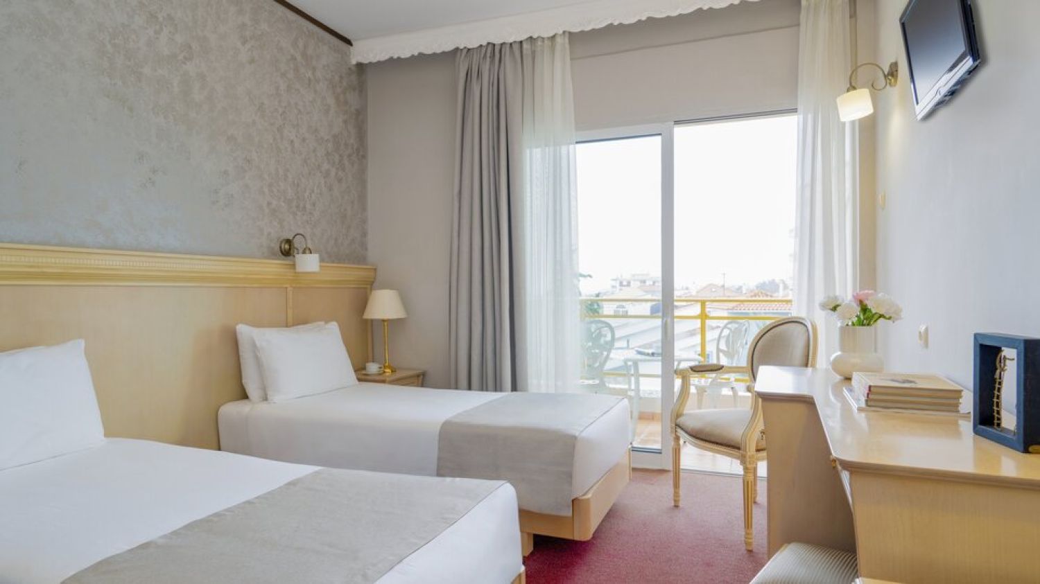 Eona Beach Resort ex Santa Beach Hotel is a luxury retreat located near Thessaloniki and the idyllic coast of Chalkidiki, offering breathtaking views of the Thermaikos Gulf and Mount Olympus. With beautifully renovated rooms featuring modern designs and wooden accents, the hotel provides a perfect blend of elegance,comfort and top-notch service. Guests can enjoy various amenities, including a gourmet restaurant, a stylish lounge bar, an inviting pool area, and versatile event venues. Whether for leisure or business, Eona Beach Resort is an excellent choice for a memorable stay. Aristotelous Square and the Thessaloniki center are a short drive away (25km), while the airport is at 13km distance.