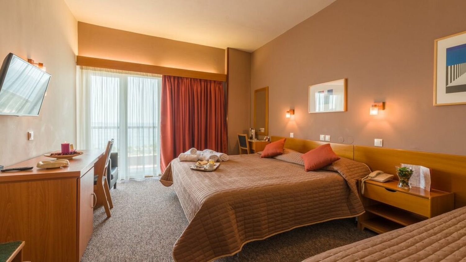 Открийте сърцето на Солун от комфорта на хотел Куийн Олга. Разположен на само 1 км от центъра на града и на 12 км от летището, този приветлив хотел предлага лесен достъп до най-важните забележителности на Солун, което го прави идеална база за вашето гръцко пътуване. Построен в края на 60-те години от визуални артисти в стила на времето, хотел Куийн Олга е добре познат в Солун със своя уникален и гостоприемен сервис.