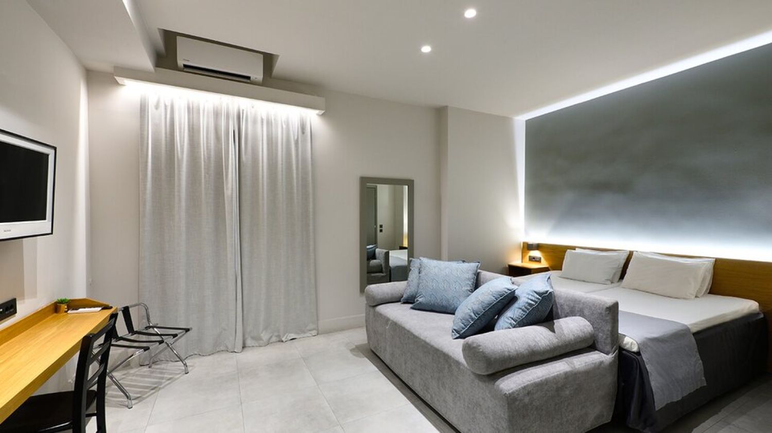 Le Palace Art Hotel, великолепен пример за неокласическа архитектура, е перфектно разположен в оживеното сърце на Солун, по натоварената улица Цимиски. Само на няколко минути от емблематичния площад Аристотелис, хотелът предлага удобен достъп до дизайнерски магазини, развлекателни заведения, кафенета, ресторанти, музеи и основни туристически атракции — всичко това на пешеходно разстояние. Хотелът разполага с 54 елегантни стаи с високи тавани, включително 12 Executive стаи. Историческият квартал Лададика се намира на 3 минути пеша, с неговите чаровни таверни и местни кафенета, водещи към пристанището на Солун и площад Аристотелис. Летището на Солун е на 18 км разстояние.