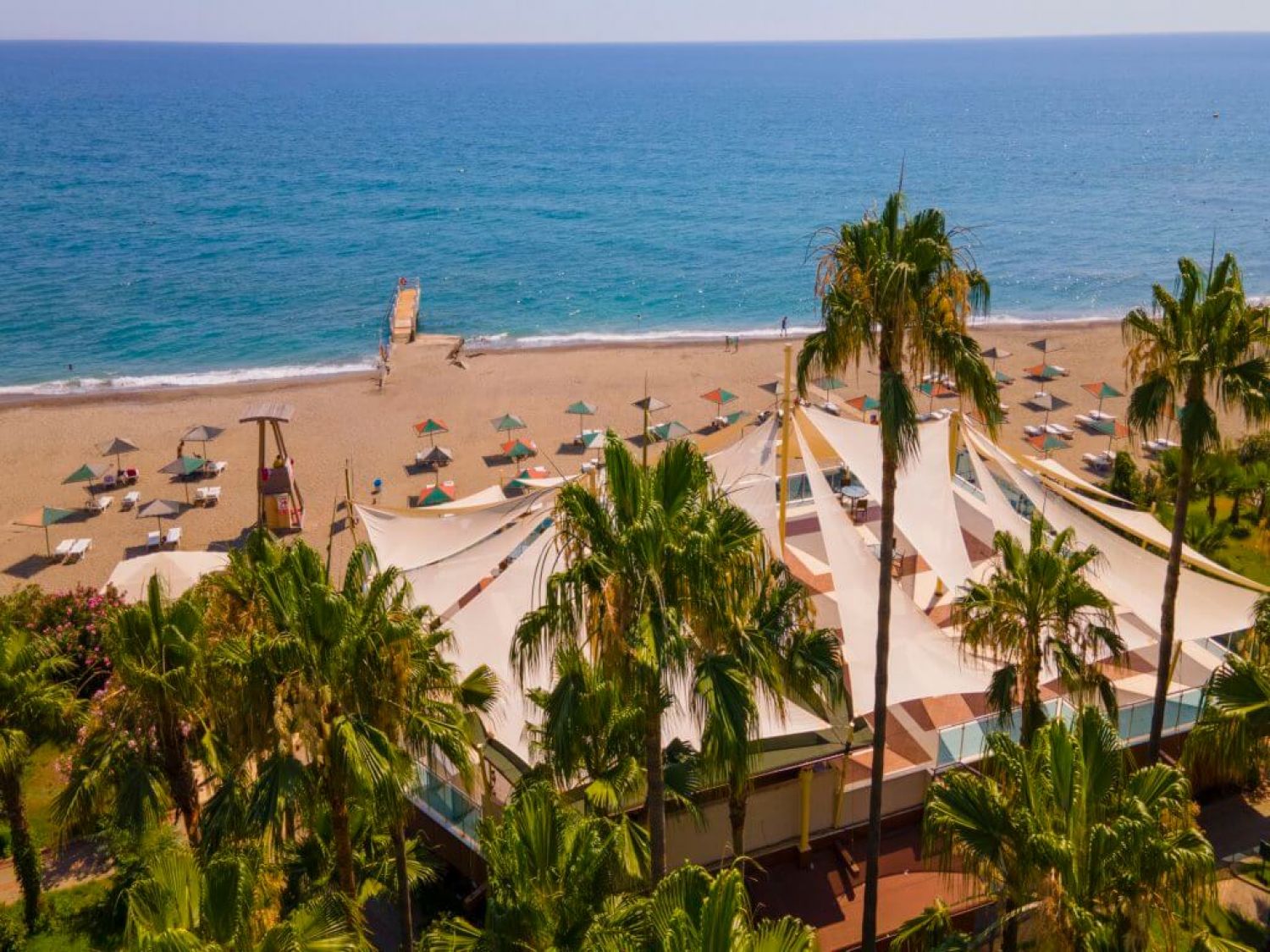 Хотела разпоалга с пясъчно-чакълест.,чадъри, матраци, шезлонги на плажа и при басейна-безплатно, плажни кърпи-срещу депозит.