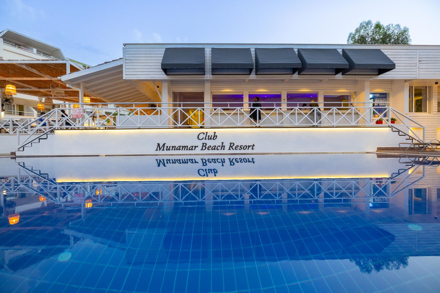Плаж: Собствен, пясъчен, на 60 м. от хотела (пред Munamar Beach & Residence). Чадъри и шезлонги на плажа и при басейна - безплатно.