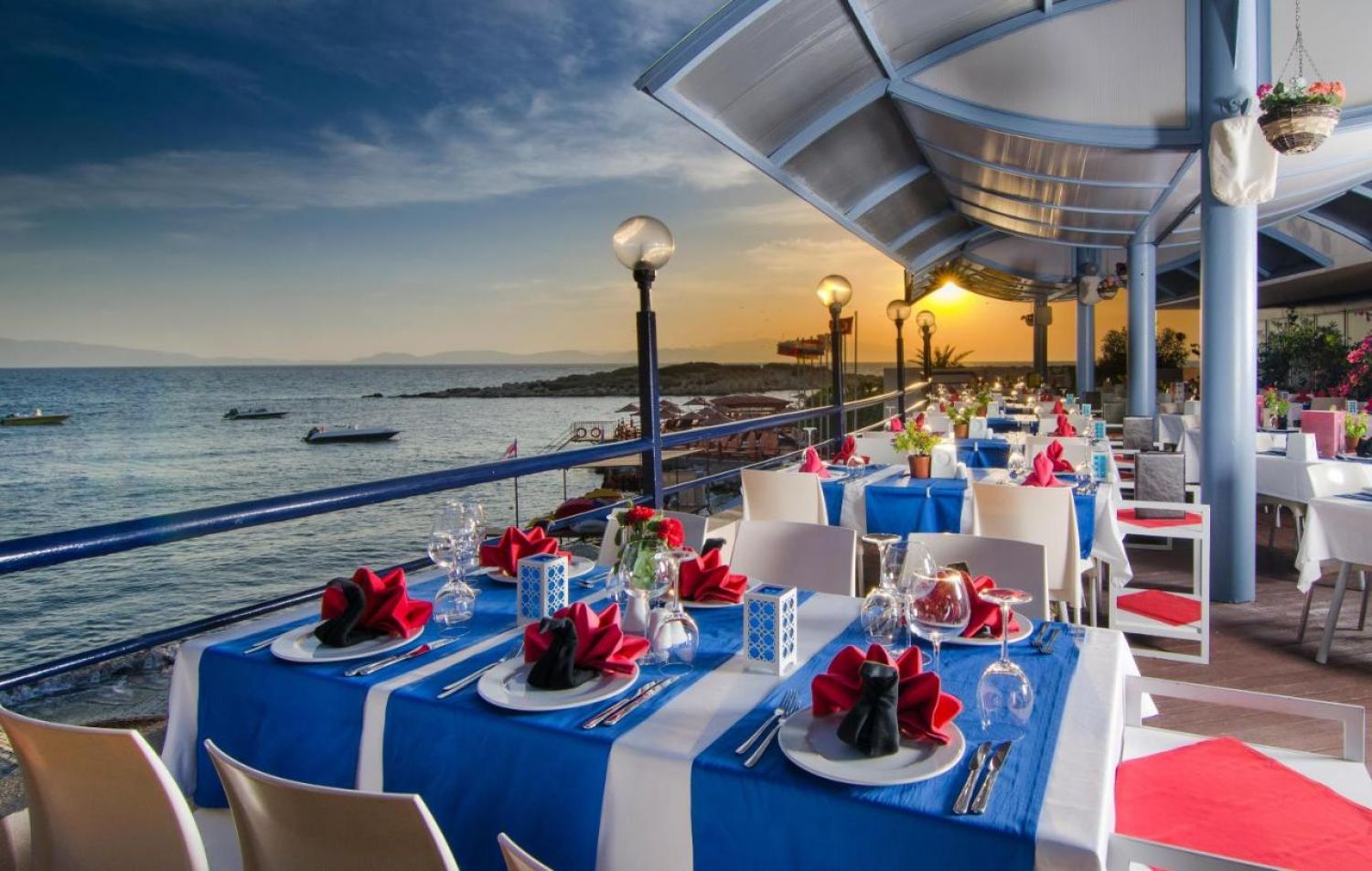 Основен ресторант, 3 а-ла-карт ресторанта (рибен, отомански и италиански - 1 безплатно посещение на 1 от тях, в периода от 01.06-15.09, с предварителна резервация), 5 бара, сладкарница, 2 открити басейна, СПА център, дискотека, магазини.