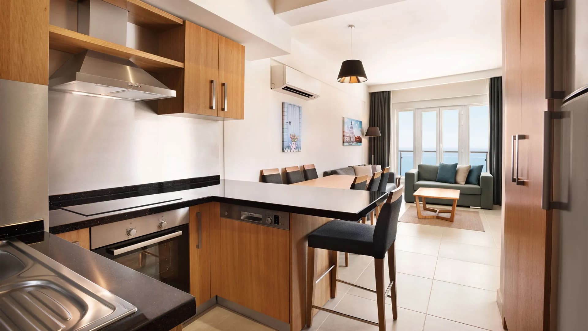 Хотелът разполога с общо 265 стаи, разположени в 4 блока: Superior Room (34 м²), Junior Suite Room (1 спалня, хол - 53 м²), Family Suite Room (2 спални, хол - 71 м²). Всички стаи са оборудвани с климатик, телевизор, телефон, баня с душ или вана, сешоар, сет за чай/кафе, минибар (безплатно еднократно зареждане с вода и безалкохолни напитки при настаняване), сейф (безплатен), балкон, Wi-Fi. Почистване на стаите – всеки ден, смяна на спалното бельо – 2 пъти в седмицата, смяна на кърпите – 3 пъти в седмицата.