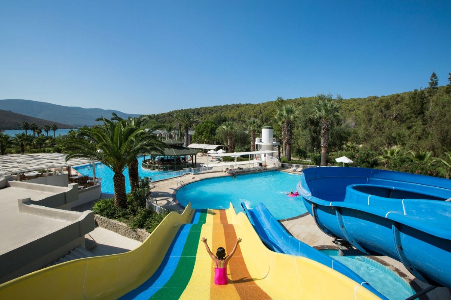 Основен ресторант, 2 а-ла-карт ресторанта (рибен – срещу заплащане, турски - 1 безплатно посещение при минимум 4 нощувки), сладкарница, 9 бара, 4 открит басейн, аквапарк, СПА център, дискотека, магазини, паркинг.