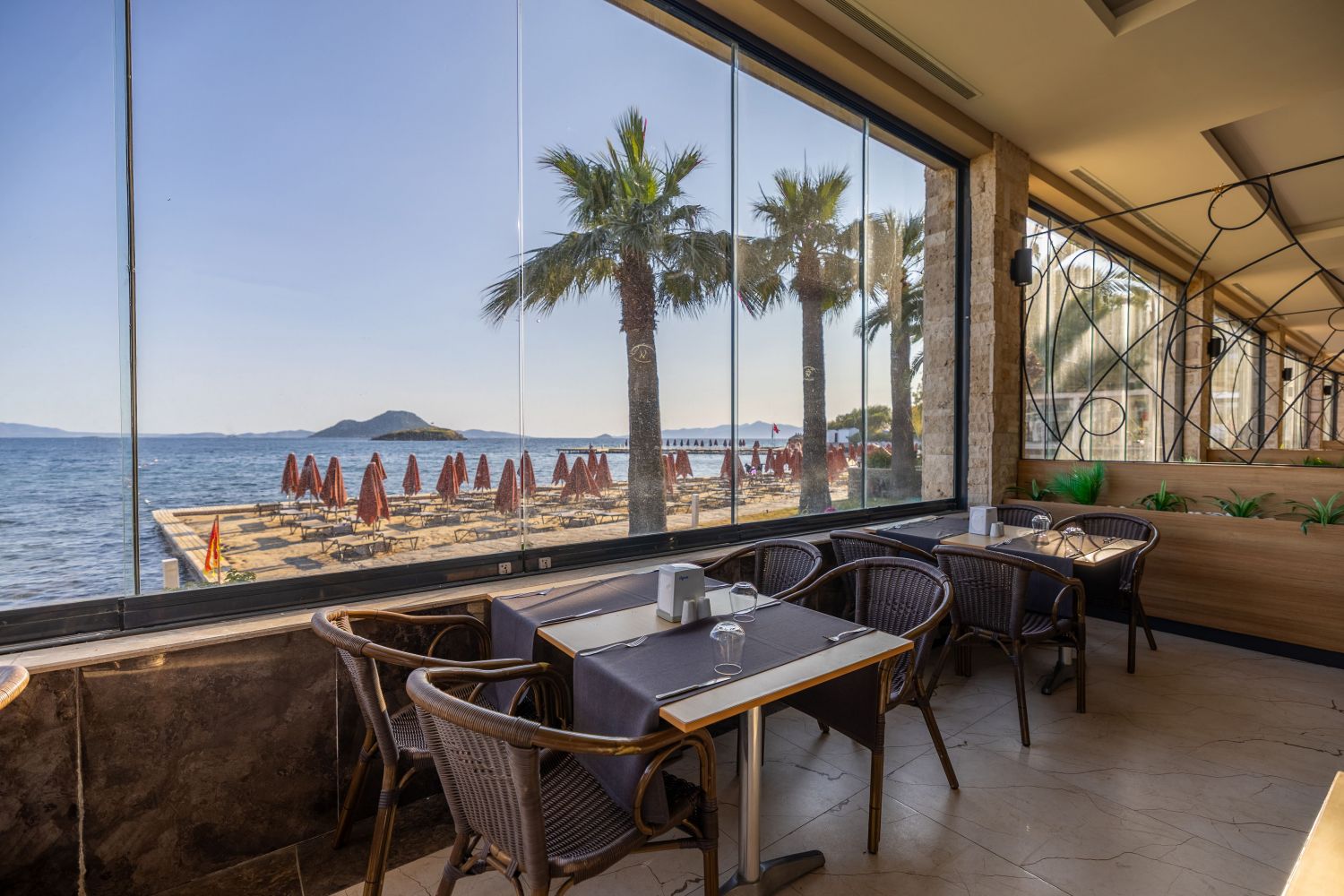 Намира се на 50 км от летище Бодрум, на 20 км от центъра на Бодрум, на 3 км от центъра на Тургутрейс, на брега на морето. Построен 1989 г., на обща площ от 36 000 м². Реновиран 2017 г.