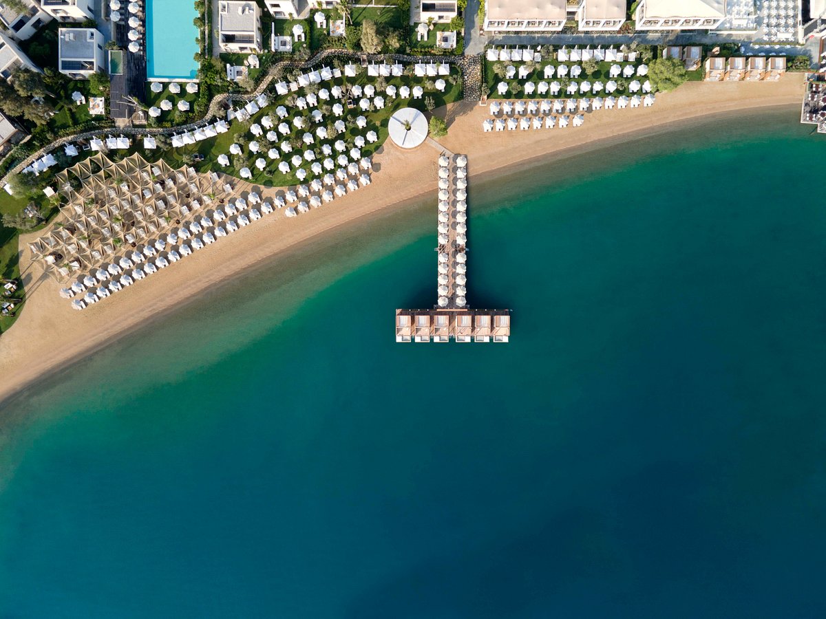 Собствен - 300м пясъчен, разделен на две части - фамилна и само за възрастни 16+; 2 платформи - чадъри, шезлонги и матраци на плажа и при басейна - безплатно.