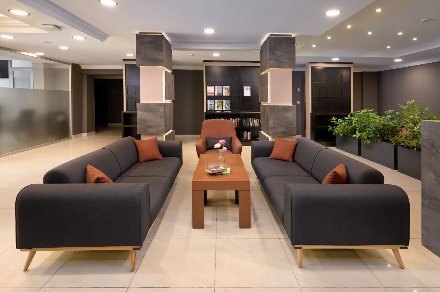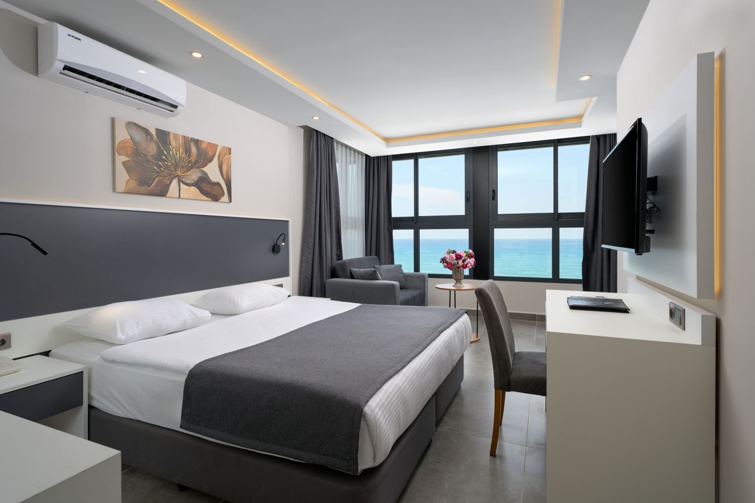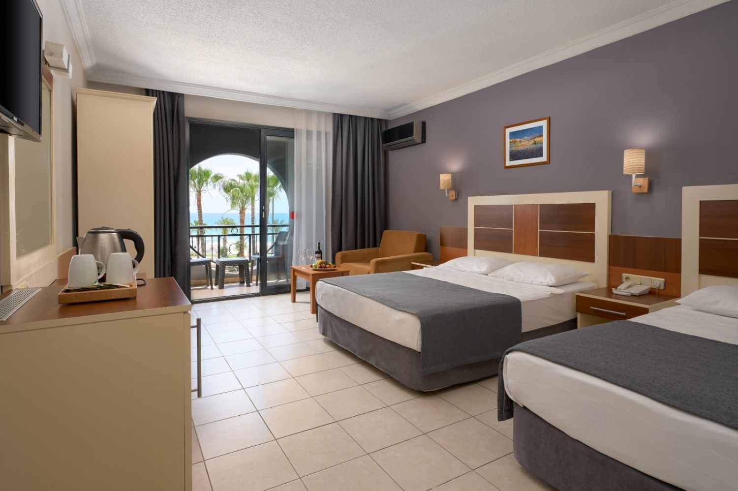 Хотелът разполага с общо 214 стаи, разположени в 3 шестетажни корпуси, от които 185 Standard room (18-25 м2), 2 Handicapped room 25 m², 28 Family room (2 спални, 1 баня – 55 м2). Всички стаи са оборудвани с климатик, телевизор, телефон, баня с душ/вана, сешоар, минибар (срещу заплащане), сейф (срещу заплащане). Почистване на стаите всеки ден - смяна на спалното бельо и кърпите - 2 пъти в седмицата.