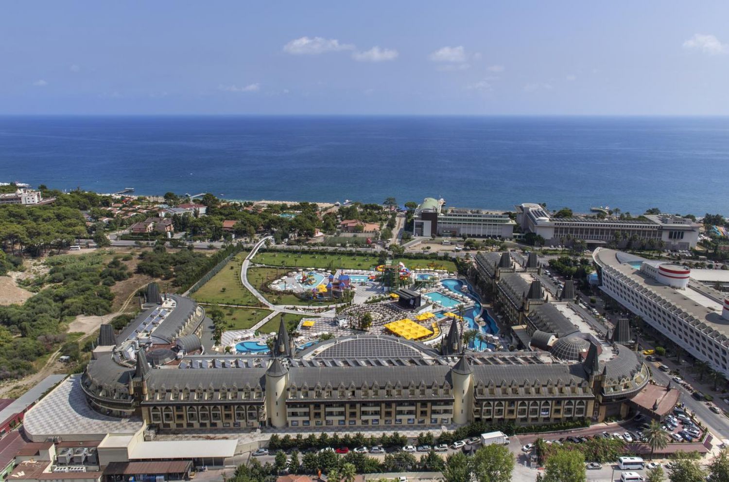 Основен ресторант, 3 а-ла карт ресторанта (италиански, турски, рибен - с предварителна резервация срещу заплащане), снек бар (пица, пиде, гюзлеме), 4 бара (1 от които на плажа), сладкарница, 5 открити и 1 закрит басейн, 7 водни пързалки, СПА център, открита дискотека, кино зала, паркинг, конферентна зала.