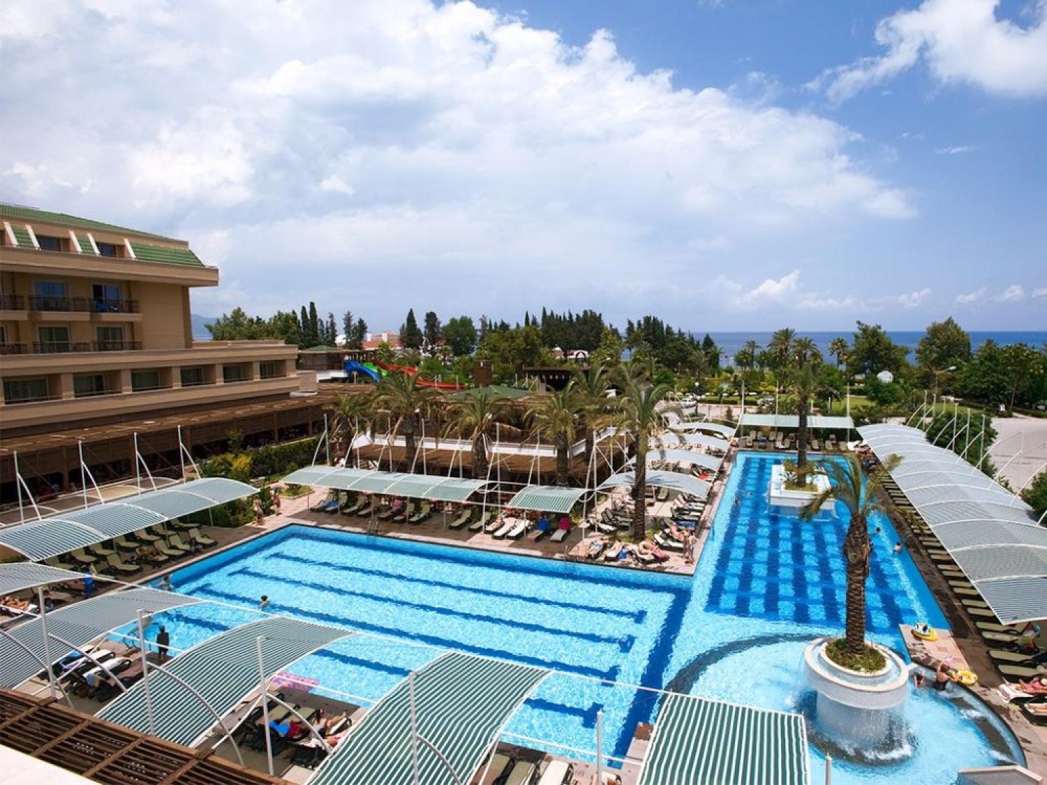 Основен ресторант, а - ла - карт ресторант (с предварителна резервация), 4 бара, 3 открити и 2 закрити басейна, водни пързалки, магазини, СПА център, дискотека, кино, конферентни зали, паркинг. За децата: Детска площадка, мини клуб (4-12 г.), 2 детски басейна – външен и вътрешен, водни пързалки, анимация. Безплатни услуги: Турска баня, сауна, джакузи, фитнес, дартс, тенис на маса, тенис корт (с предварителна резервация), баскетбол, аеробика, водна гимнастика, кино, жива музика, анимация, интернет. Платени услуги: Масаж, фризьор, търговски център, билярд, боулинг, джаги, интернет кафе (с предварителна резервация), видеоигри, химическо чистене, лекар, водни спортове, наем на топки и ракети за тенис, осветление за тенис корта.