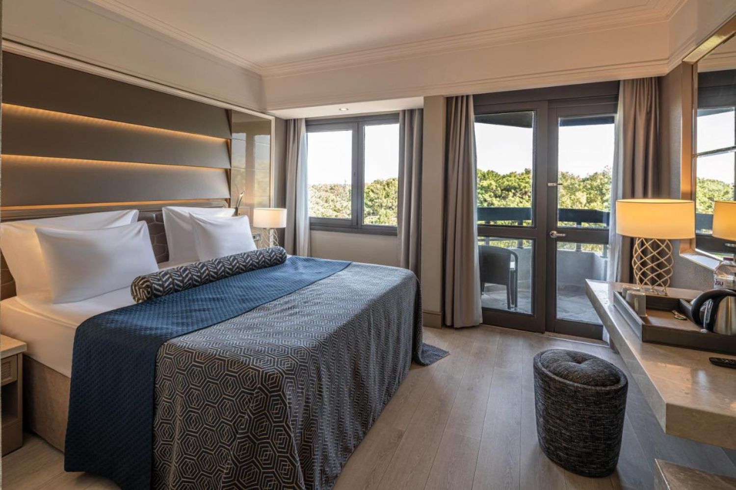 Всички стаи са оборудвани с климатик, телевизор, телефон, баня с душ/вана, сешоар, сет за чай/кафе, минибар (зарежда се всекидневно с вода и безалкохолни напитки - безплатно), сейф (безплатен), балкон.