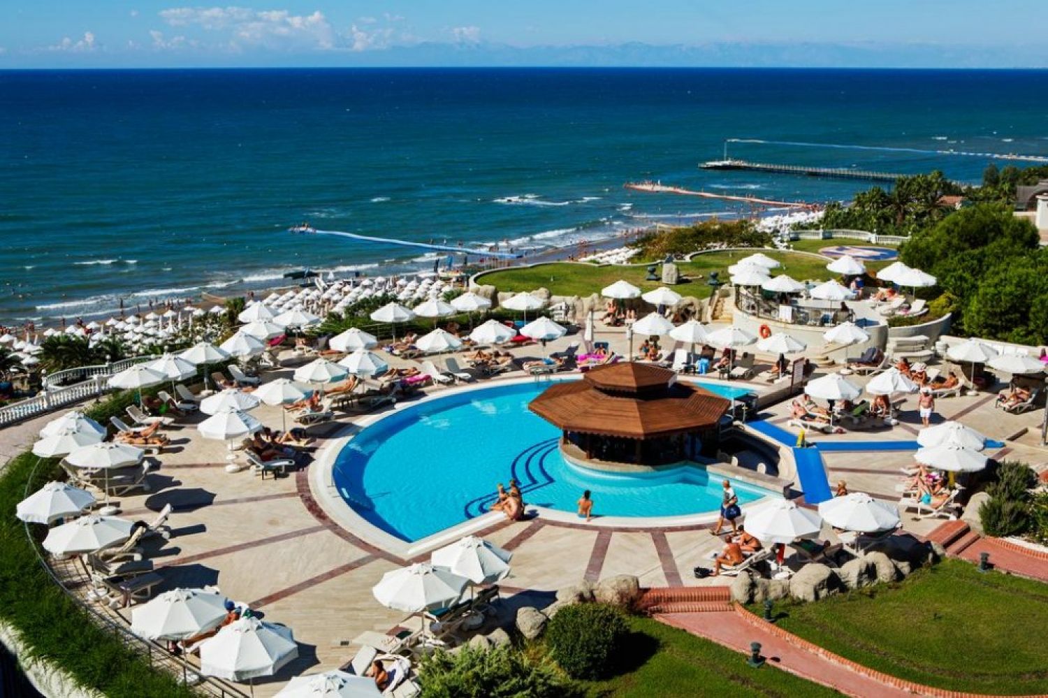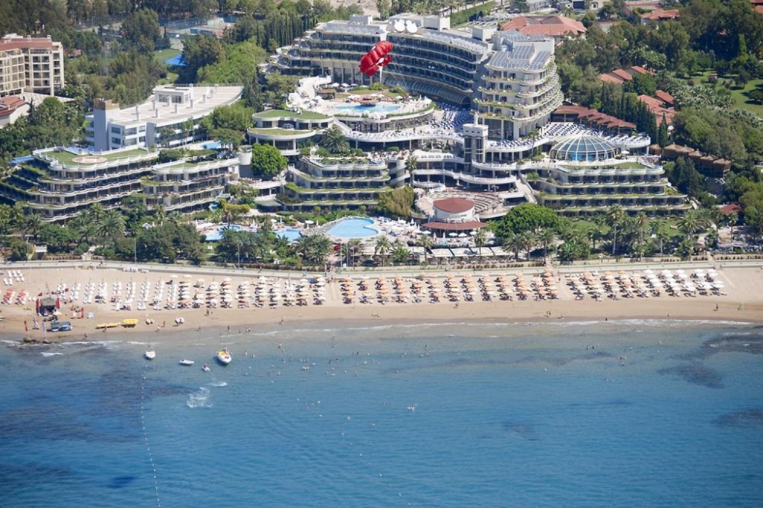0сновен ресторант, диетично меню, вегетарианско меню, 4 a - лa - карт ресторанта (турски, рибен, италиански, мексикански, с предварителна резервация, за едноседмичен престой посещението на два ресторанта 1 път – безплатно), 9 бара, 6 открити басейна, закрит басейн, 3 водни пързалки, кино, лекарски кабинет, СПА център (платено), фризьорски салон (платено), магазини, пералня, химическо чистене, 3 конферентна зала , футболно поле на плажа (25х30) За децата: детски бюфет, 2 детски басейна, 2 детски водни пързалки, мини-клуб (4-12 год.), бебефон (платено), нагревател за бутилки (платено), блендер (платено), детска количка (с резервация, платено) детегледачка (платено). Безплатни услуги: турска баня, сауна, парна баня, фитнес, аеробика, аквааеробика, плажен волейбол, мини-футбол, скуош, боча, 6 тенис корта в твърдо покритие, тенис на маса, дартс, анимационна програма музика на живо (2 пъти седмично), дискотека, безжичен интернет (на цялата територия). Платени услуги: масаж, боулинг (2 пътеки),билярд, наем на тенис, ракети и топки, осветление на тенис ракети и топки, уроци по тенис, игрални автомати, водни спортове, уиндсърфинг (с лиценз), интернет - кафе, фризьор, СПА-център.