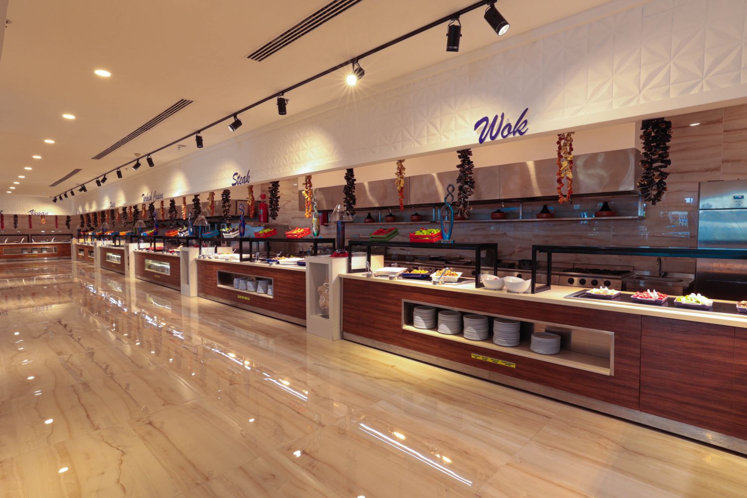 Основен ресторант, 3 а-ла-карт ресторанта (италиански, турски, средиземноморски – с предварителна резервация, 1 безплатно посещение), снек бар (24 ч), 9 бара от които един е диско бар, сладкарница, 2 открити и 1 закрит басейн, СПА център, аквапарк, фитнес, паркинг.