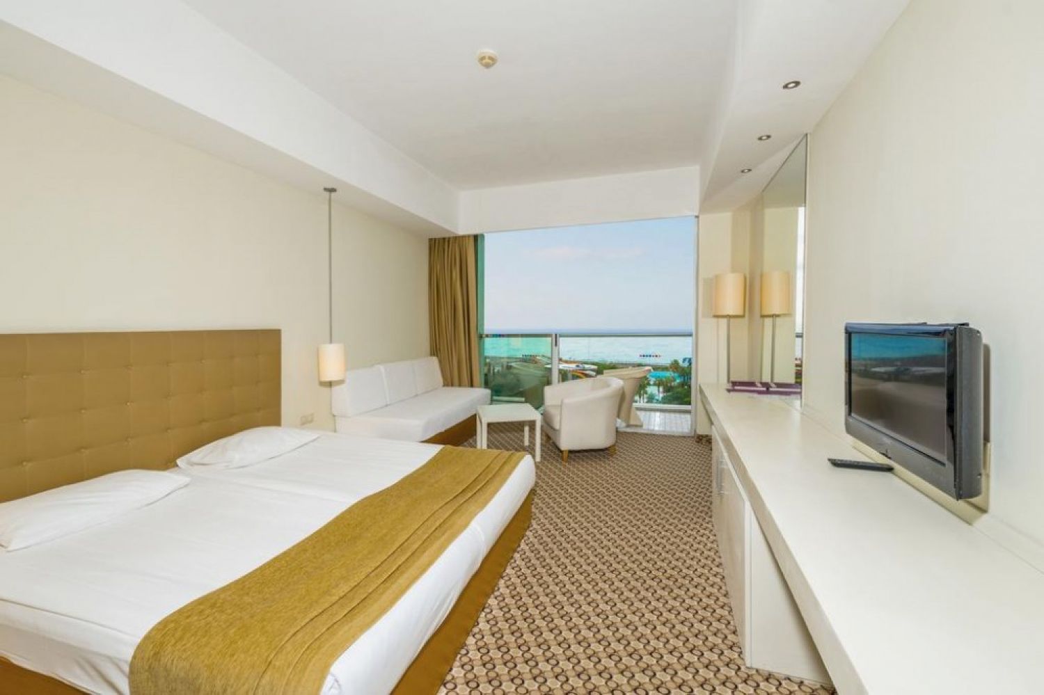 Хотелът разполага с общо 400 стаи, разположени в една 8-етажна сграда Main Building, от които 304 стандартни стаи Standard room (изглед суша или море - 28 м2), 96 Junior Suite Room (2 стаи свързани с врата - 35 м2). Всички стаи са оборудвани с климатик, телевизор, телефон, баня с душ/вана, сешоар, интернет (безплатен), минибар (безплатен), сет за кафе/чай, сейф (безплатен). Почистване на стаите и смяна на кърпи и спално бельо - ежедневно.