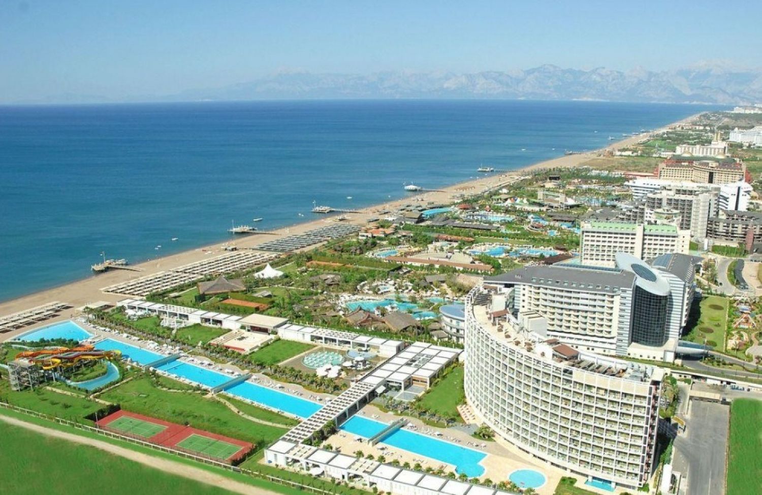 Намира се на 12 км. от летище Анталия, на 14 км. от центъра на Анталия, на 3 км. от центъра на Лара, на брега на морето. Построен през 2007г. с обща площ 40.000 м2, реновиран през 2019г.