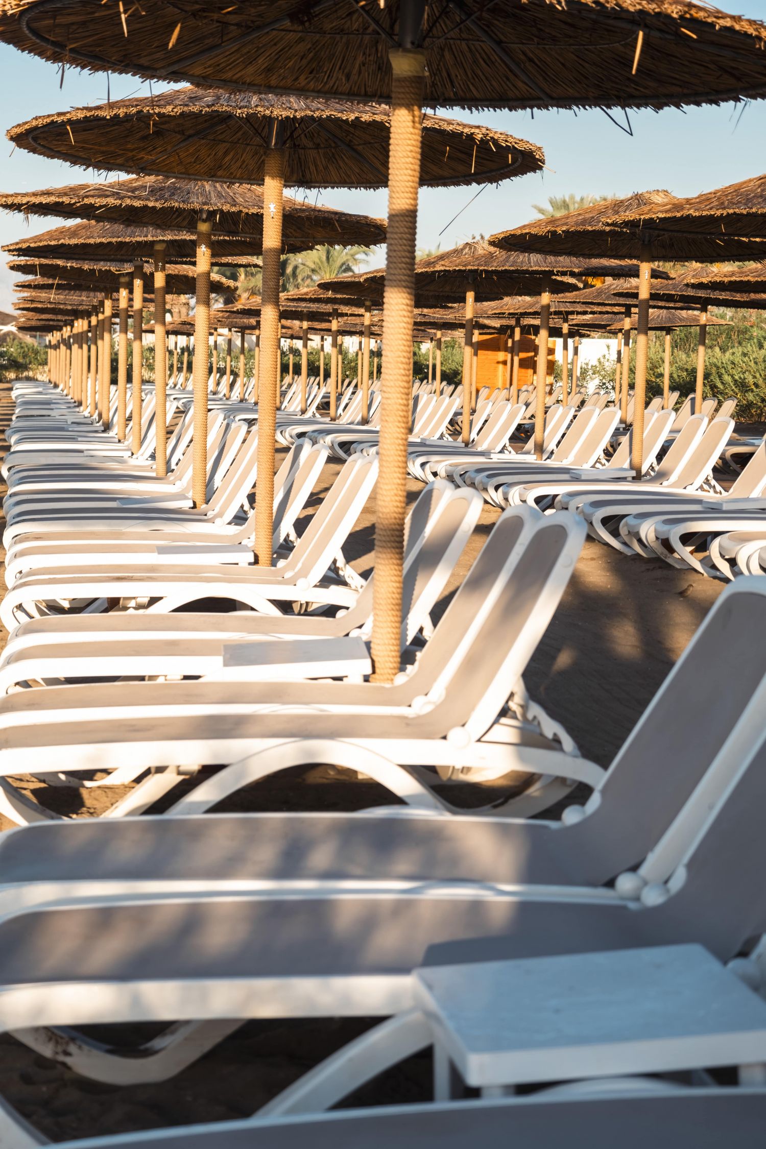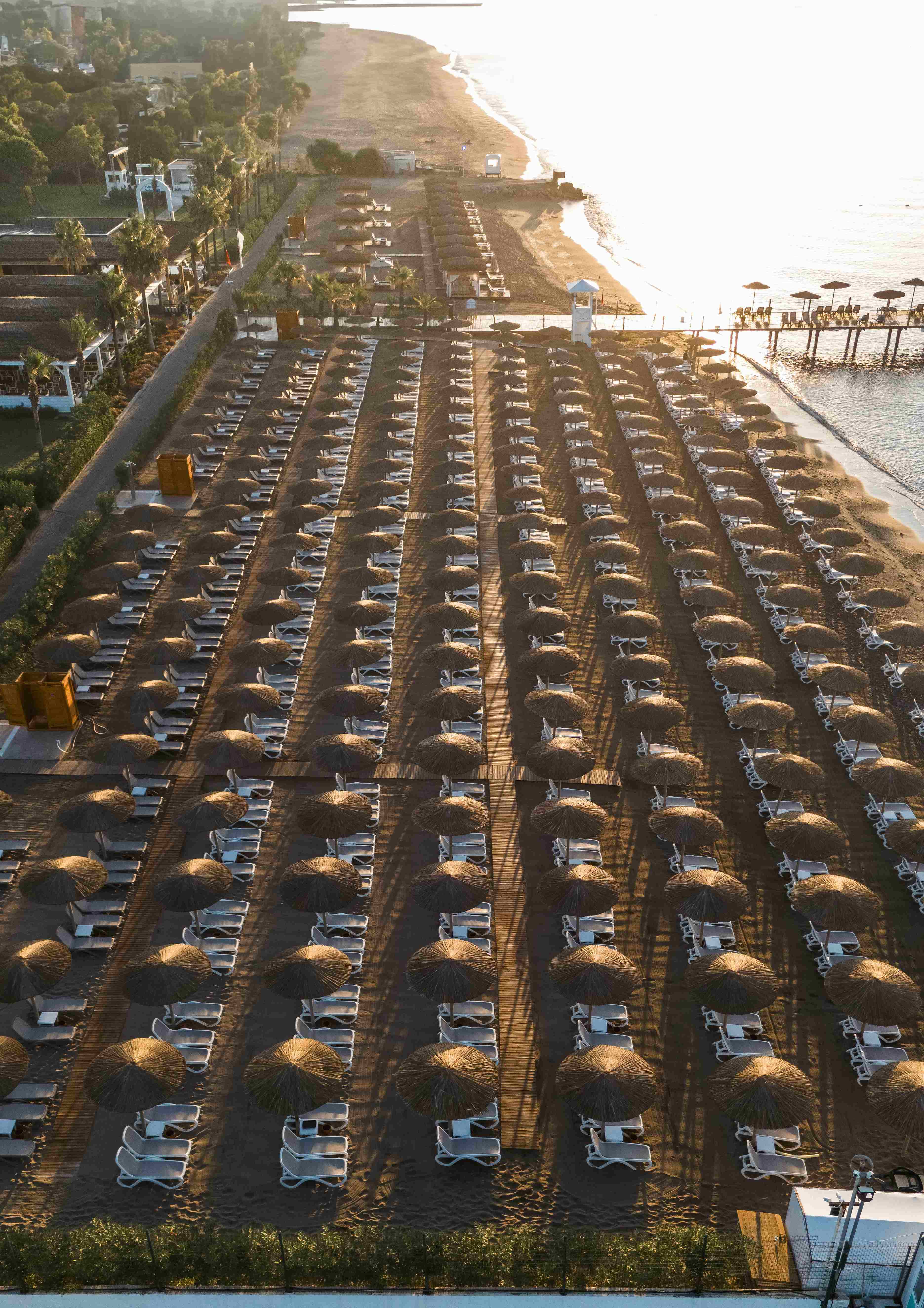 Собствен, пясъчно-чакълест, с дължина на плажната ивица 216 м. Чадъри, шезлонги и плажни кърпи на плажа и при басейна - безплатно.